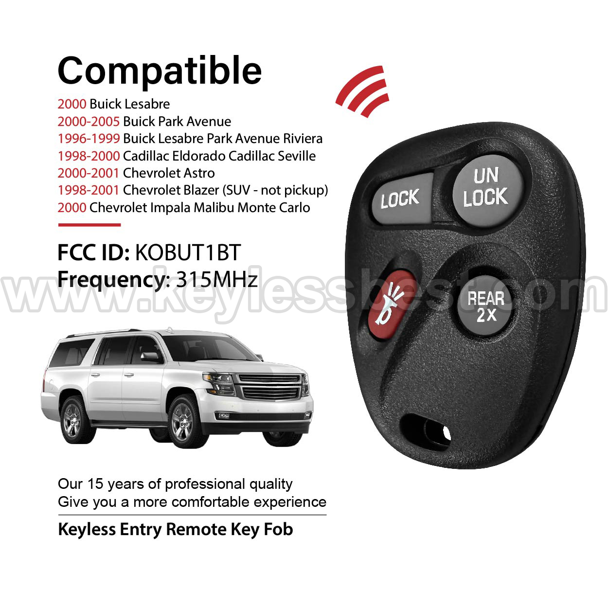 1996 – 2005 Buick Cadillac Chevrolet GMC Oldsmobile Pontiac / 4 Buttons Keyless Entry Remote / KOBUT1BT / PN: 15732805, 25628814, 25668603, 25678792, 15732805, 25656444, 25656445, 25665574, 25665575