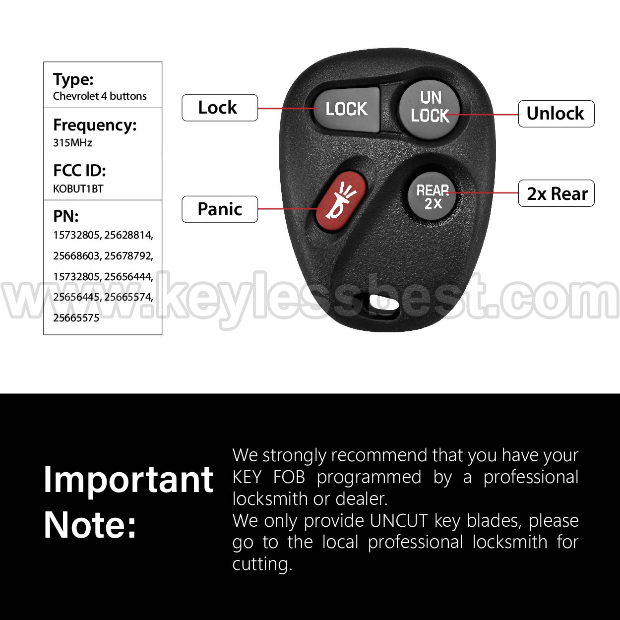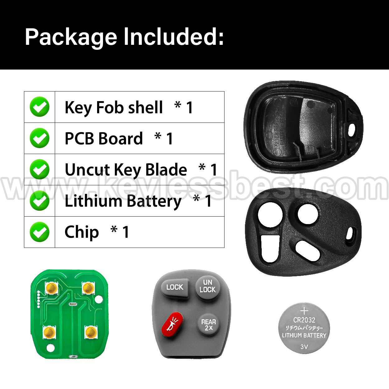 • The 1996 – 2005 Buick Cadillac Chevrolet GMC Oldsmobile Pontiac smart keyless entry fob replacement –   without  a  logo, with  an  uncut emergency  insert  key included.