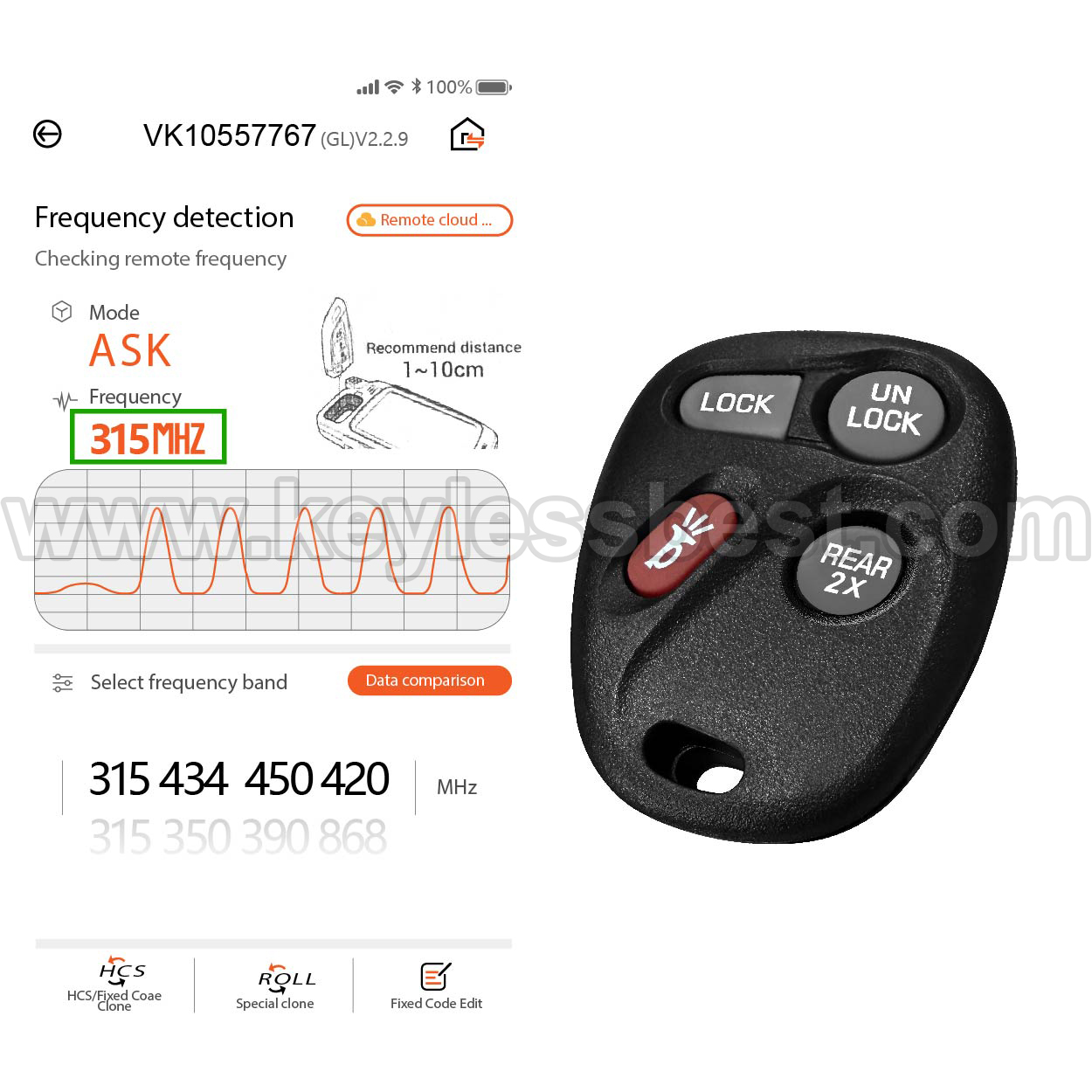 *The detailed information of this 1996 – 2005 Buick Cadillac Chevrolet GMC Oldsmobile Pontiac keyless remote fob is as follows. Please confirm the following details match your vehicle before ordering: FCC ID , Part Number ,  Year Model , IC ,   Frequency, Chip, and Buttons.