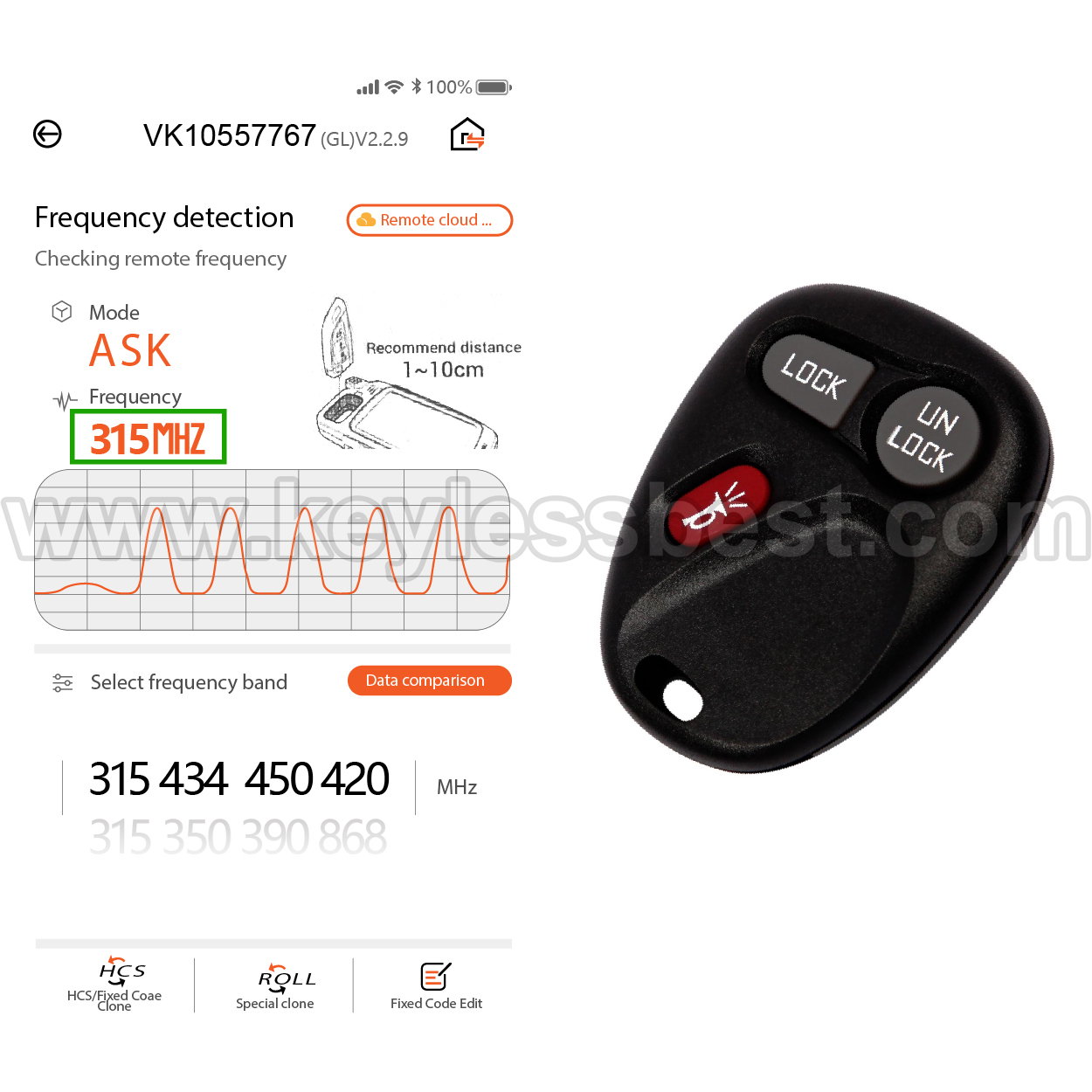 *The detailed information of this 1998-2002 Chevrolet GMC Oldsmobile keyless remote fob is as follows. Please confirm the following details match your vehicle before ordering: FCC ID , Part Number , Year Model ,IC, Frequency, Chip, and Buttons.