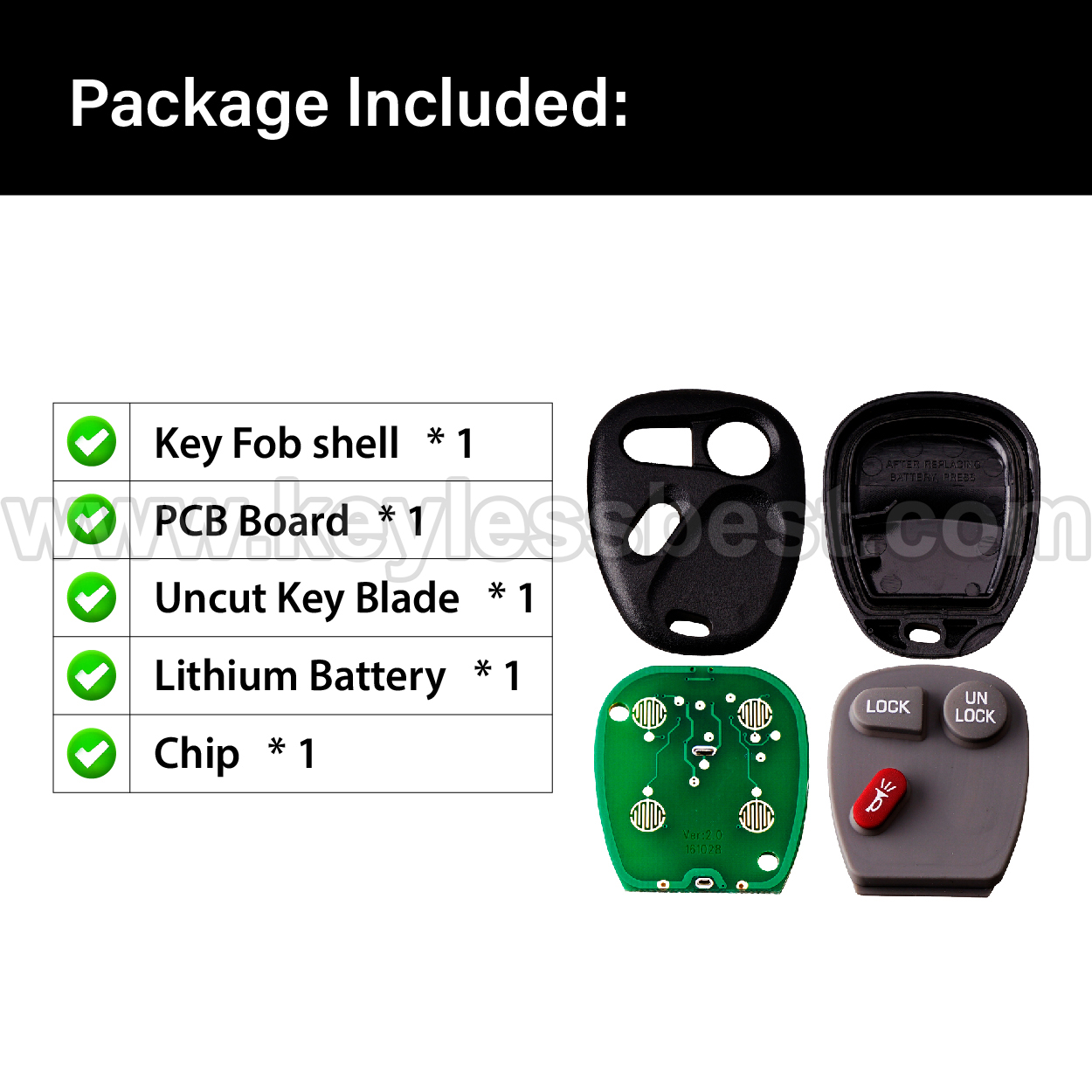 - The 1998-2002 Chevrolet GMC Oldsmobile smart keyless entry fob replacement – without a logo, with an uncut emergency insert key included.