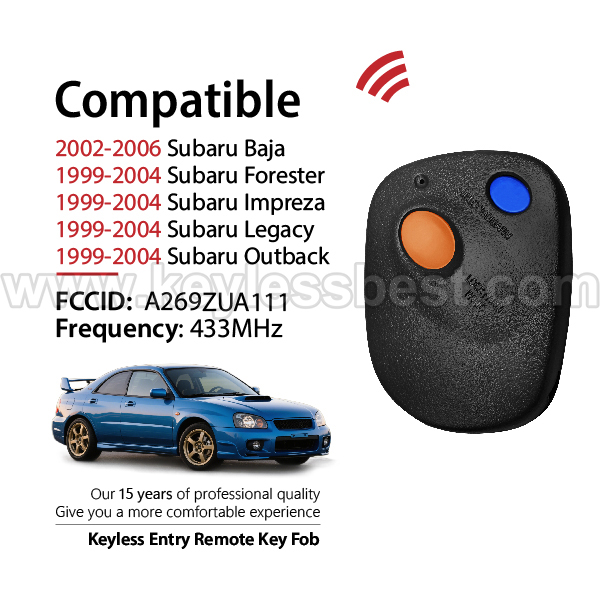 *The detailed information of this 1999-2006 Subaru keyless remote fob is as follows. Please confirm the following details match your vehicle before ordering: FCC ID , Part Number , Year Model ,IC, Frequency, Chip, and Buttons.