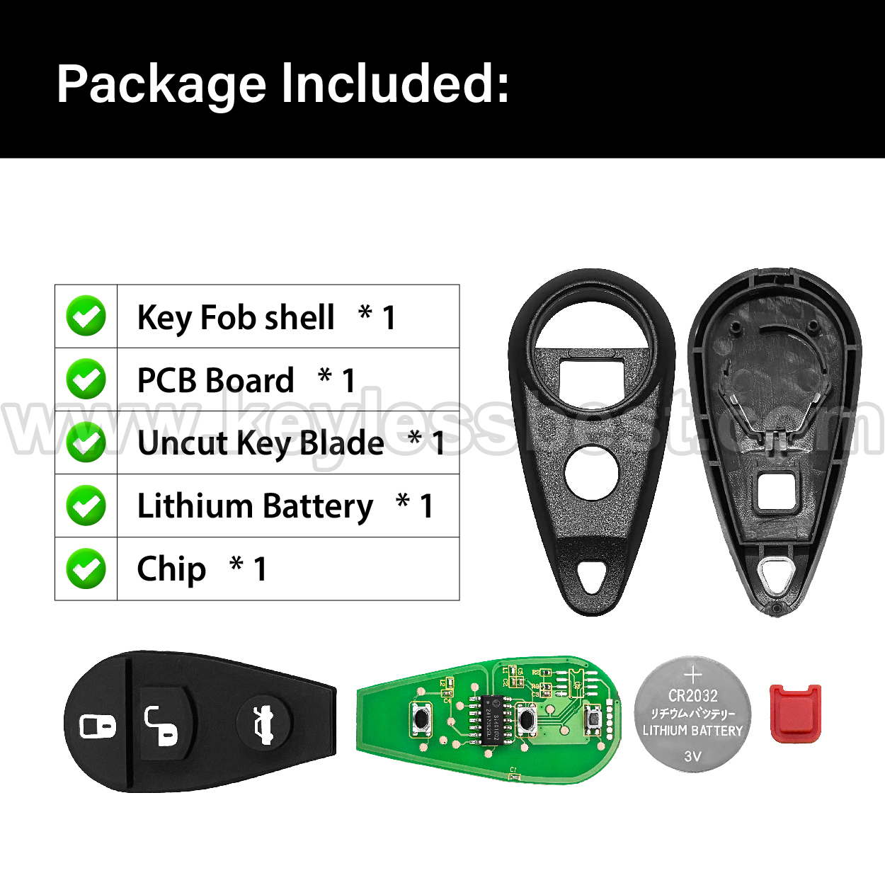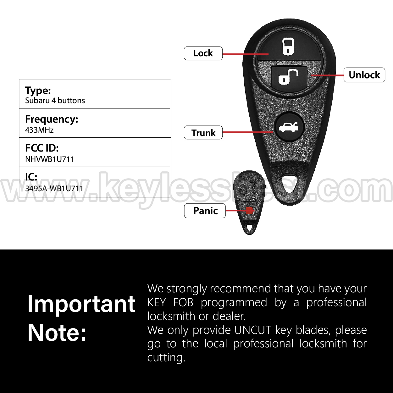 *The detailed information of this 1999-2011 Subaru keyless remote fob is as follows. Please confirm the following details match your vehicle before ordering: FCC ID , Part Number , Year Model ,IC, Frequency, Chip, and Buttons.