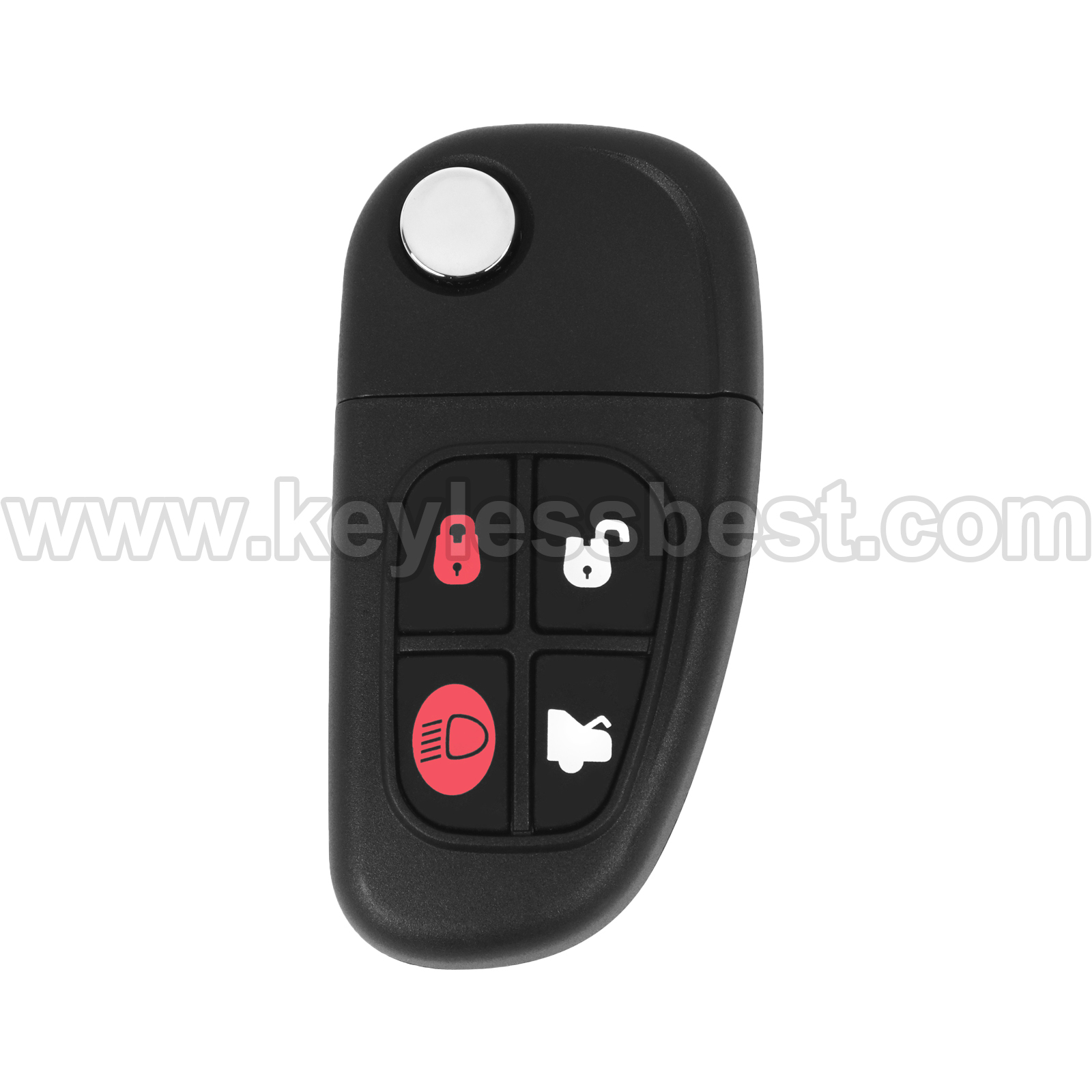 - The 2001-2008 Jaguar smart keyless entry fob replacement – without a logo, with an uncut emergency insert key included.