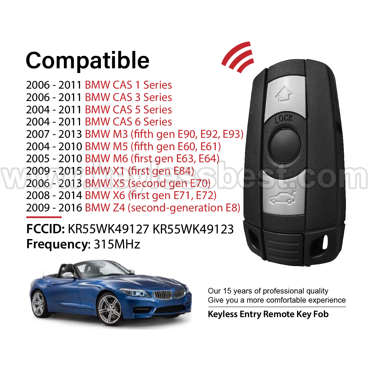*The detailed information of this 2004-2016 BMW keyless remote fob is as follows. Please confirm the following details match your vehicle before ordering: FCC ID , Part Number , Year Model ,IC, Frequency, Chip, and Buttons.