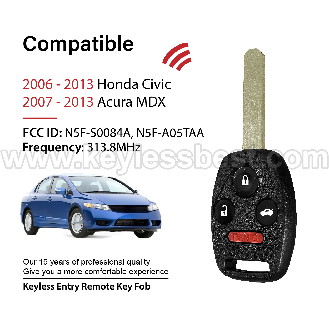 2006-2013 Honda Acura Civic MDX / 4 Buttons Keyless Entry Remote / N5F-S0084A, N5F-A05TAA / PN: 35111-SVA-306, 35118-TR0-A00 / ID46