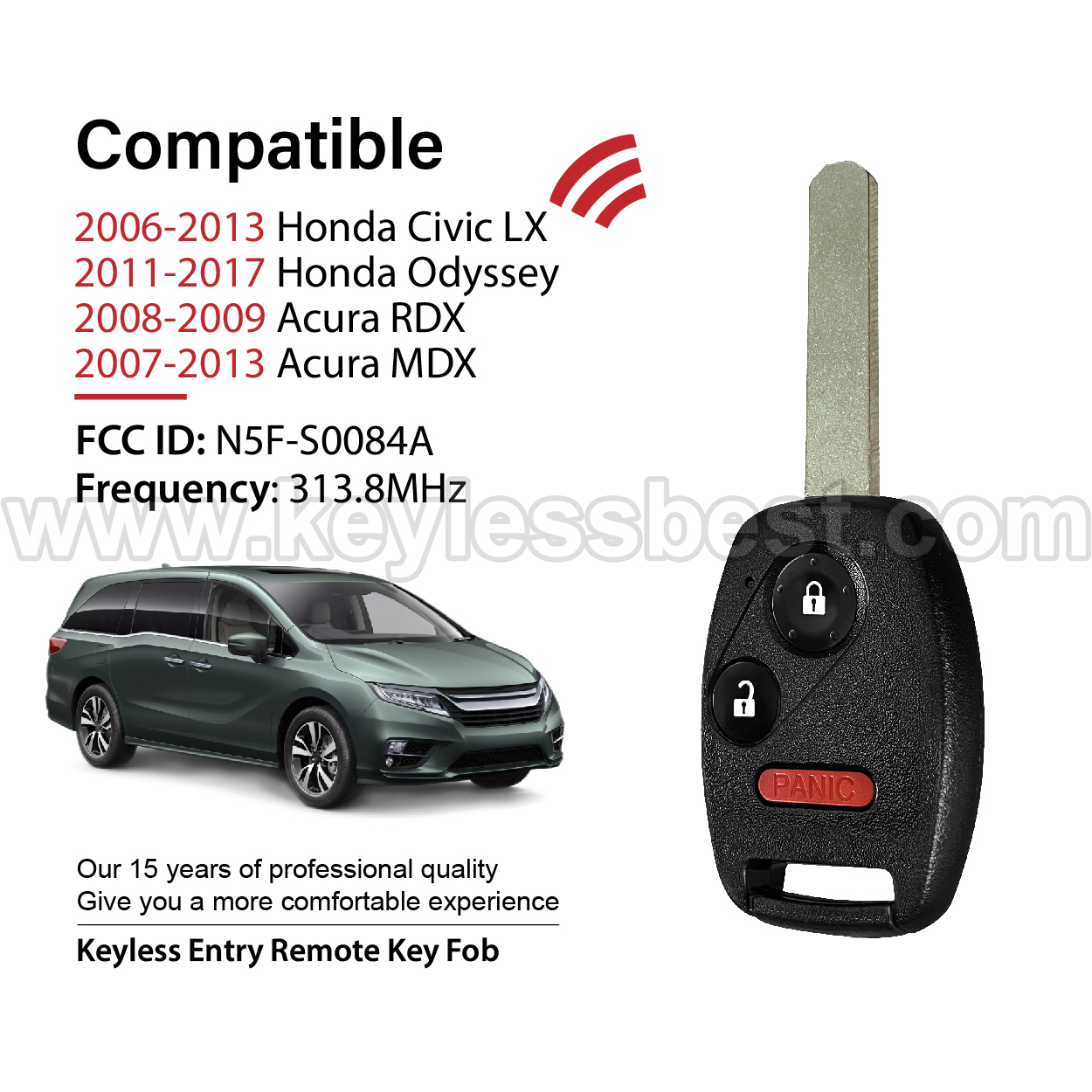 *The detailed information of this 2006-2017 Honda Acura keyless remote fob is as follows. Please confirm the following details match your vehicle before ordering: FCC ID , Part Number , Year Model ,IC, Frequency, Chip, and Buttons.