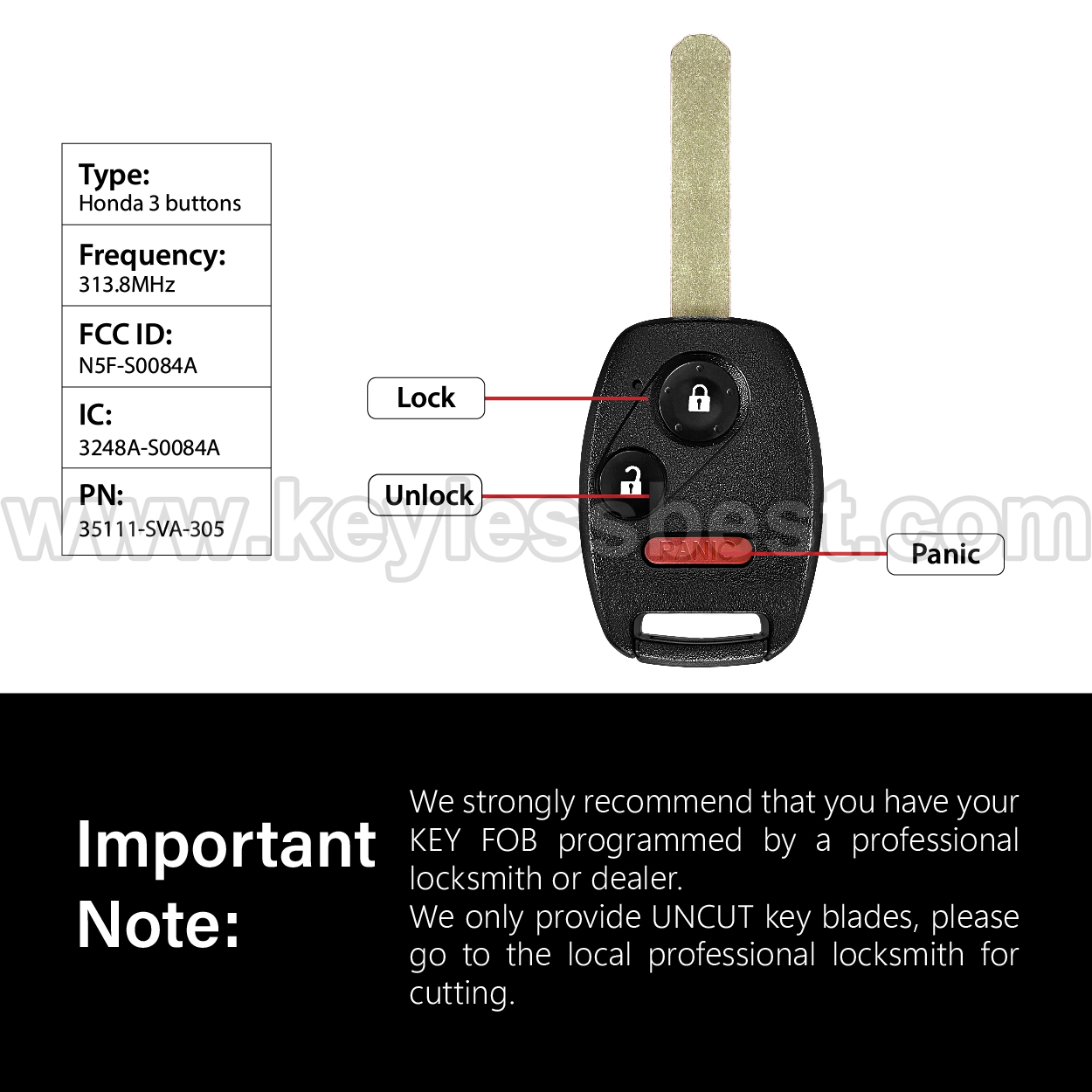 - Therefore, we strongly recommend that you have your KEY FOB programmed by a professional locksmith or dealer.