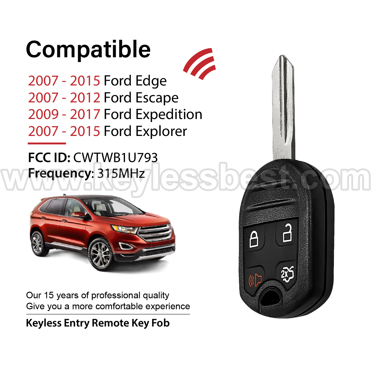 2006-2019 Ford Lincoln Edge Escape Expedition Explorer Five Hundred Flex Focus Fusion Mustang Taurus MKS MKX MKZ Navigator Zephyr / 4 Buttons Keyless Entry Remote / CWTWB1U793 / PN: 164-R8073 / 4D63 80Bit