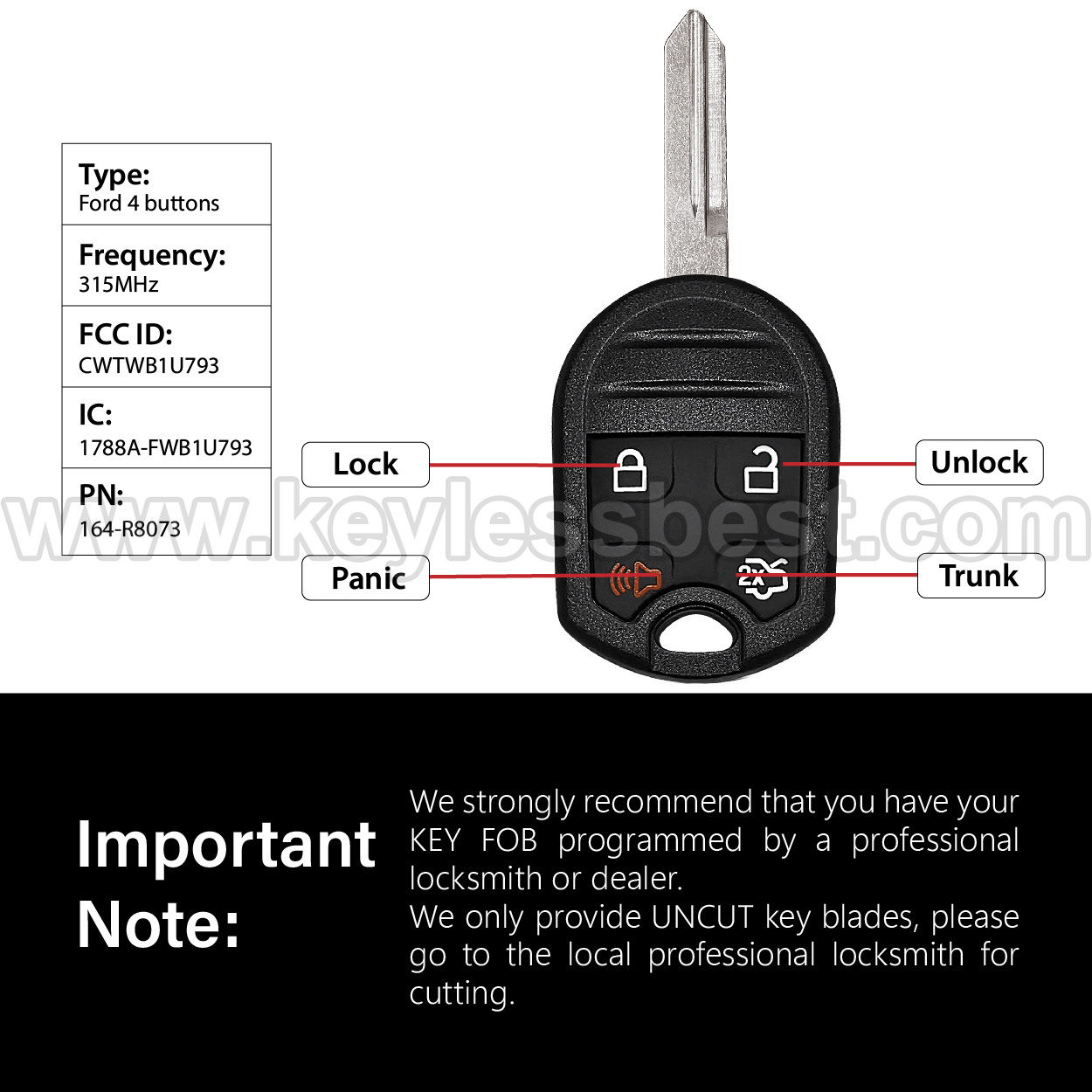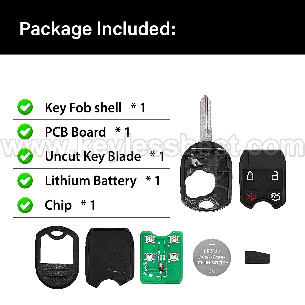 *The detailed information of this 2006-2019 Ford Lincoln keyless remote fob is as follows. Please confirm the following details match your vehicle before ordering: FCC ID , Part Number , Year Model ,IC, Frequency, Chip, and Buttons.
