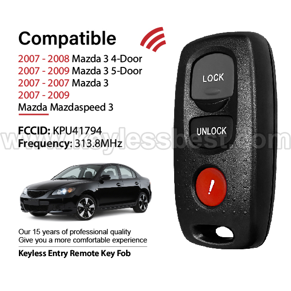 2007-2009 Mazda 3 4-Door 3 5-Door Mazdaspeed 3 3 / 3 Buttons Keyless Entry Remote / KPU41794 / PN: BAN66-75RY BAN6675RY