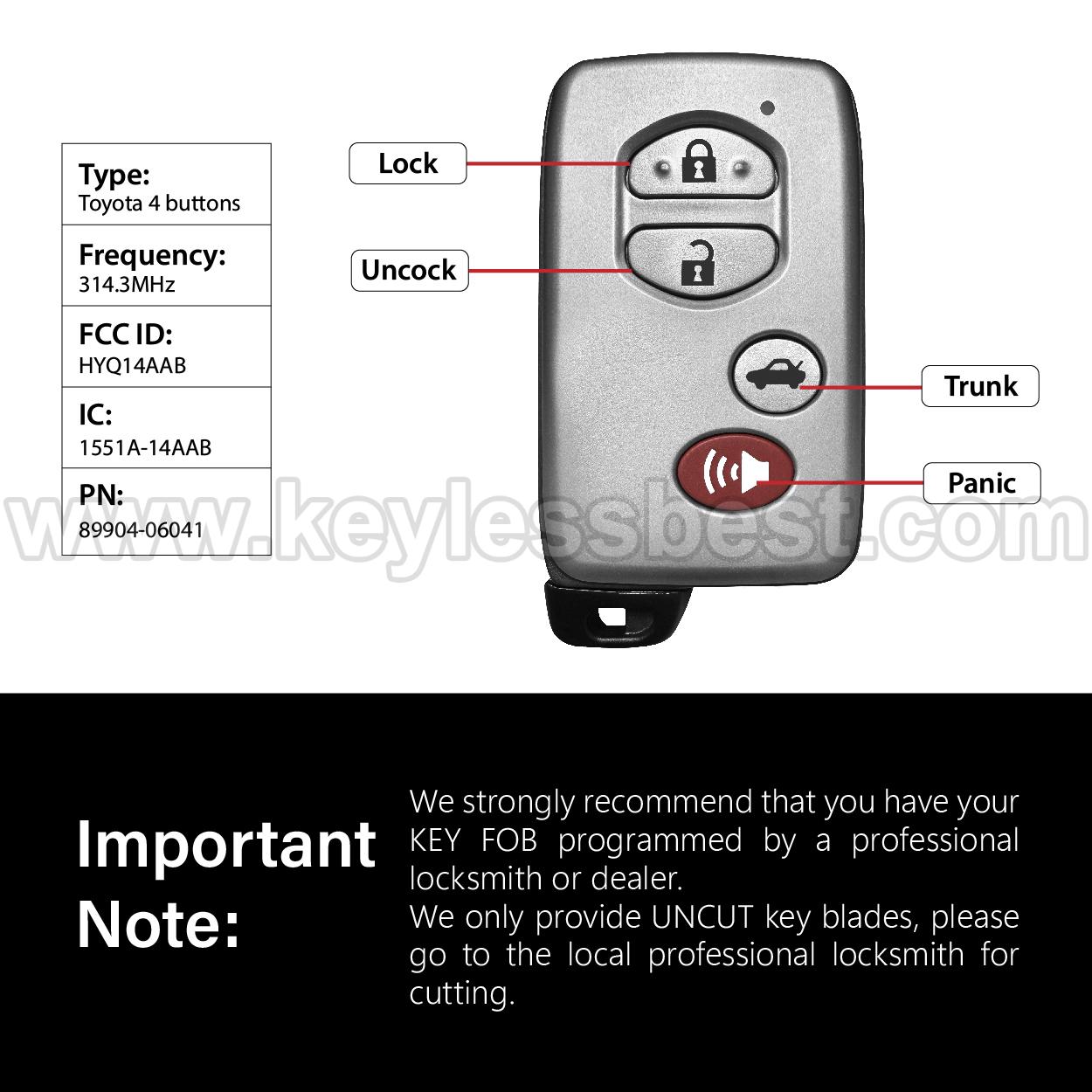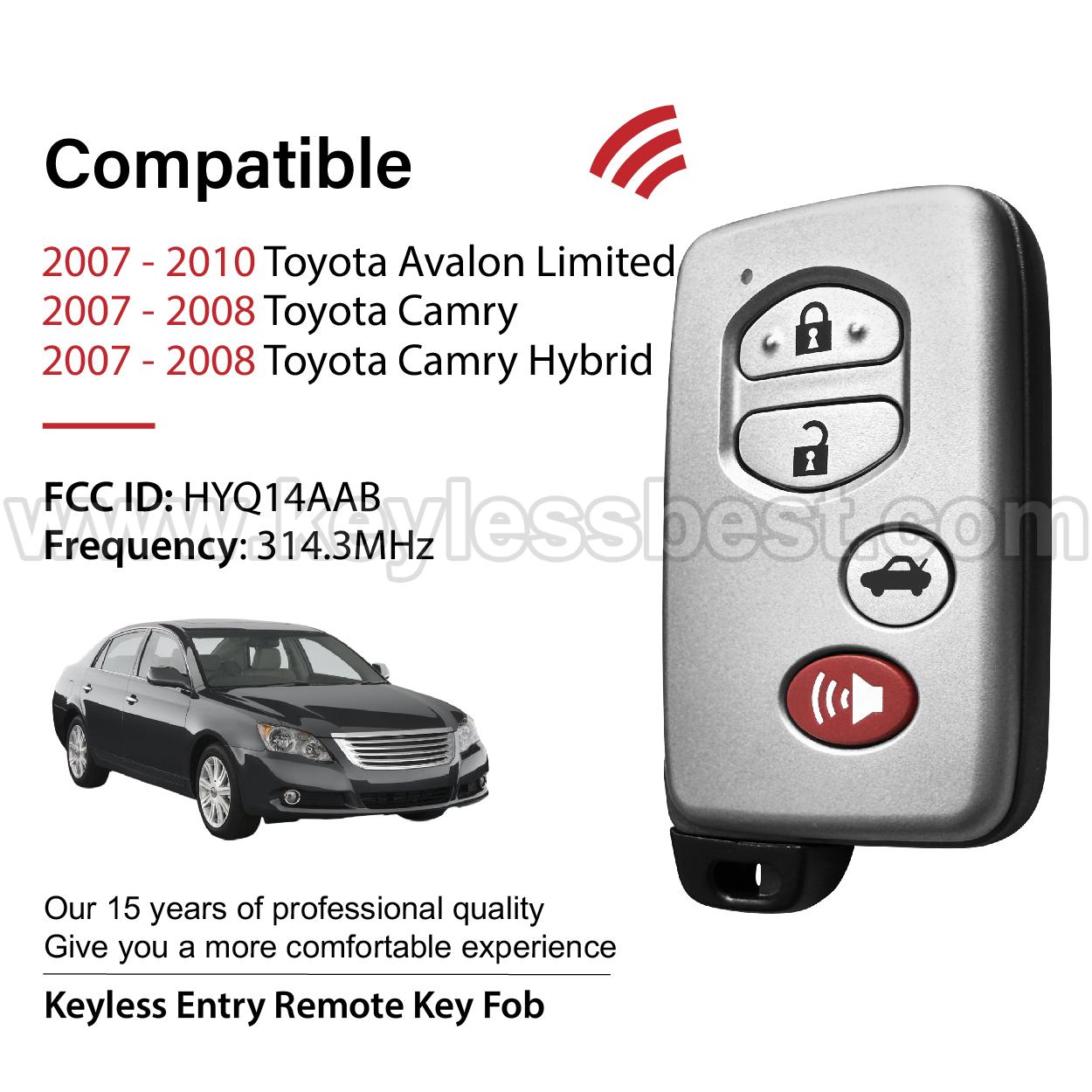 *The detailed information of this 2007-2010 Toyota keyless remote fob is as follows. Please confirm the following details match your vehicle before ordering: FCC ID , Part Number , Year Model , IC , Frequency, Chip, and Buttons.