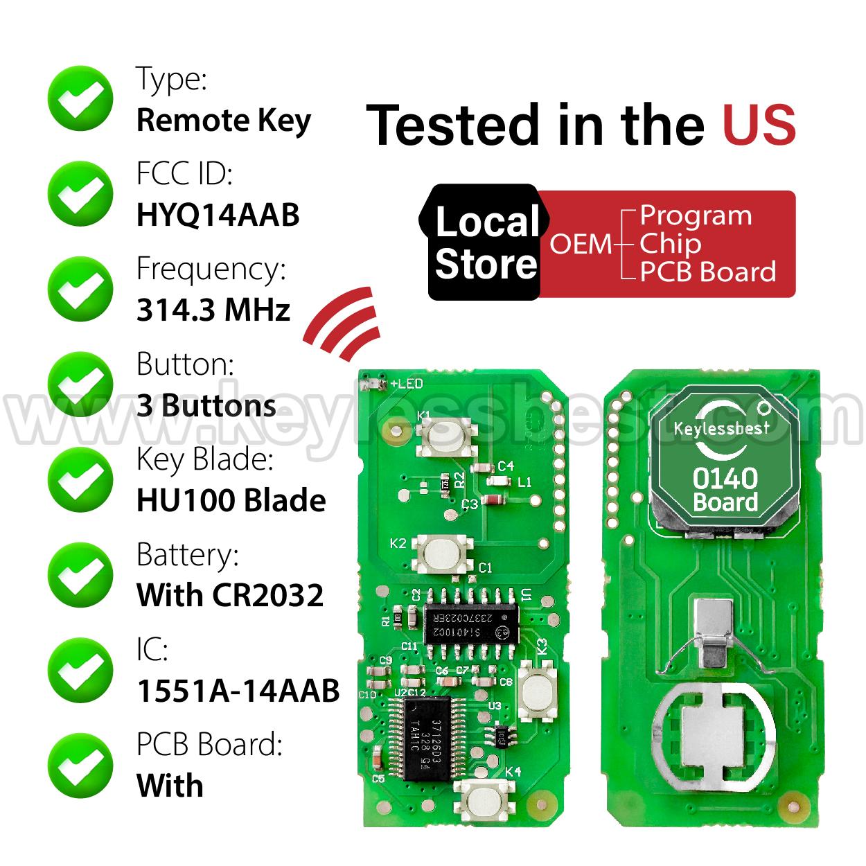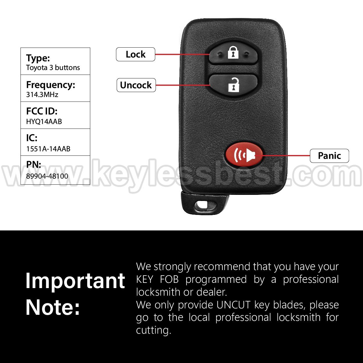 *The detailed information of this 2007-2014 Toyota keyless remote fob is as follows. Please confirm the following details match your vehicle before ordering: FCC ID , Part Number ,  Year Model , IC ,  Frequency, Chip, and Buttons.