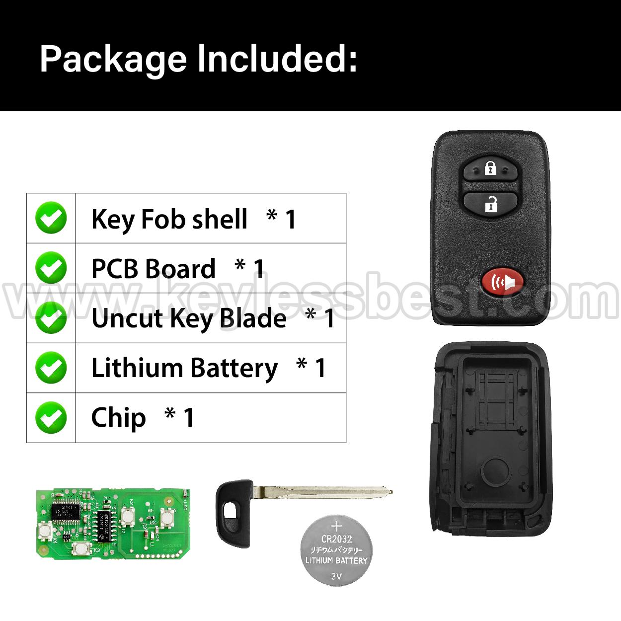• The 2007-2014 Toyota smart keyless entry fob replacement – without a logo, with an uncut emergency insert key included.