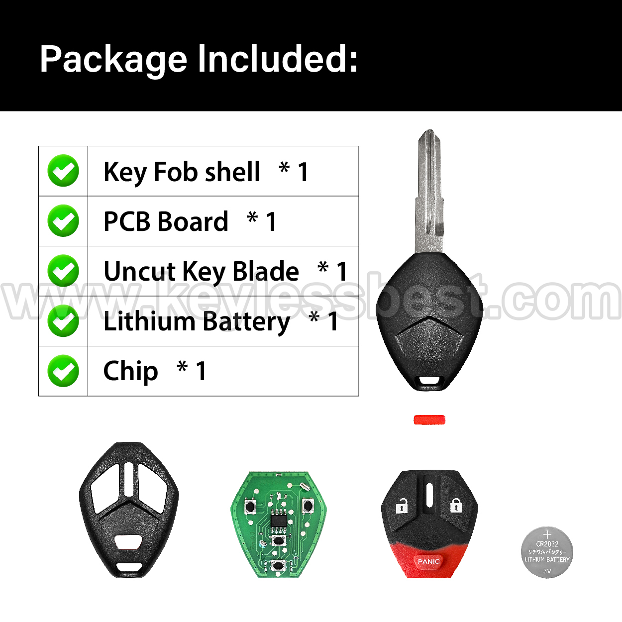 - The 2007 – 2017 Mitsubishi smart keyless entry fob replacement – without a logo, with an uncut emergency insert key included.