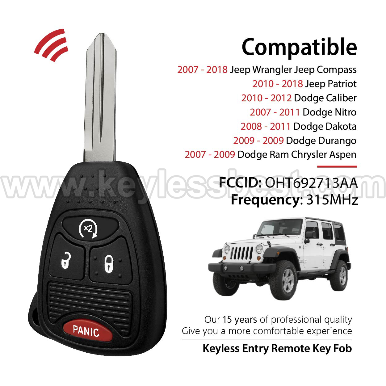 2007 – 2018 Jeep Dodge Chrysler Wrangler Patriot Compass Caliber Nitro Aspen Dakota / 4 Buttons Keyless Entry Remote / OHT692713AA / PN: 04589621AB,OHT692427AA, 04589621AA, 56040649AD/ ID46
