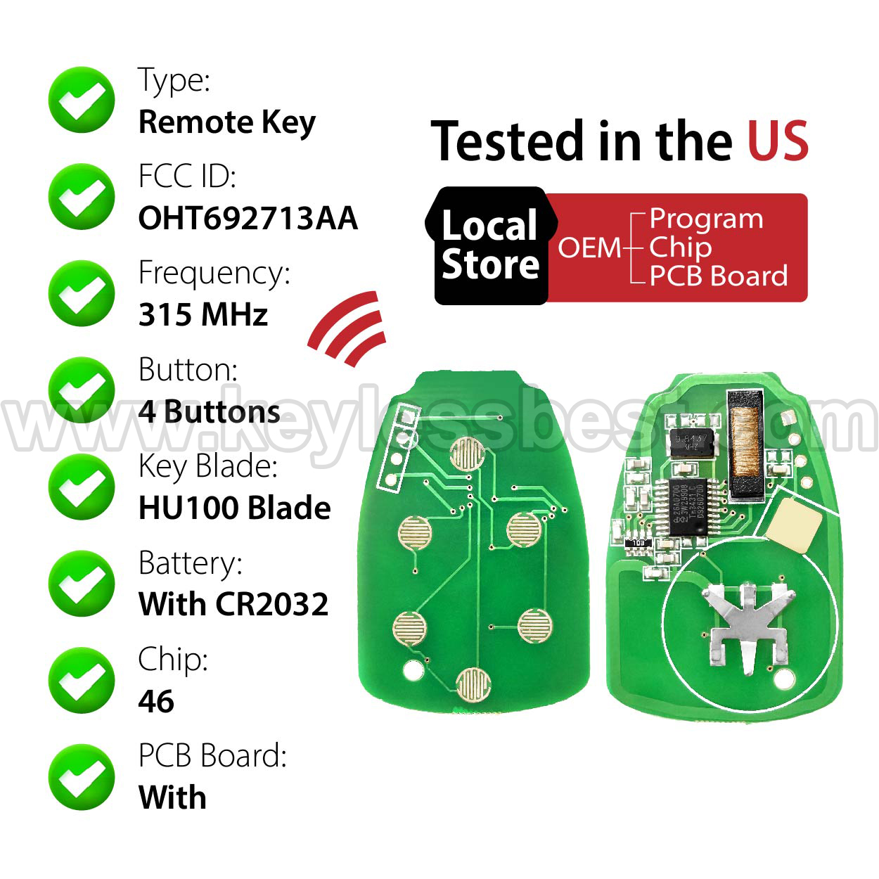 *The detailed information of this 2007 – 2018 Jeep Dodge Chrysler keyless remote fob is as follows. Please confirm the following details match your vehicle before ordering: FCC ID , Part Number , Year Model , IC , Frequency, Chip, and Buttons.