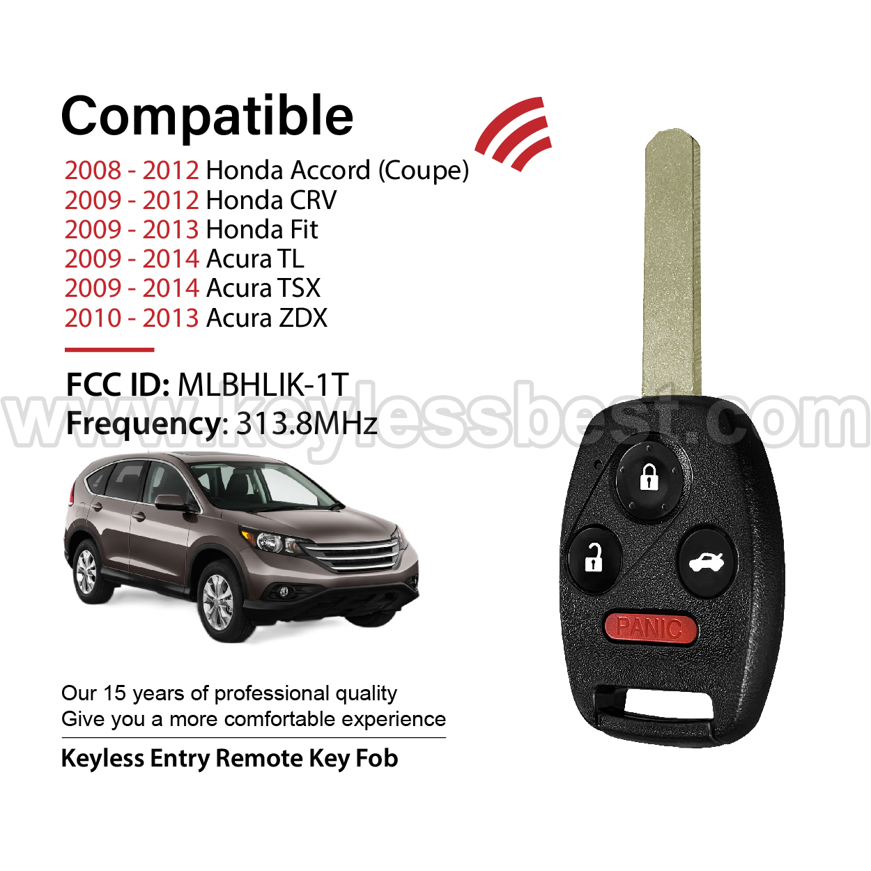*The detailed information of this 2008-2014 Honda Acura keyless remote fob is as follows. Please confirm the following details match your vehicle before ordering: FCC ID , Part Number , Year Model ,IC, Frequency, Chip, and Buttons.