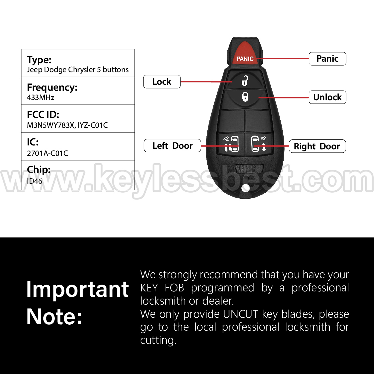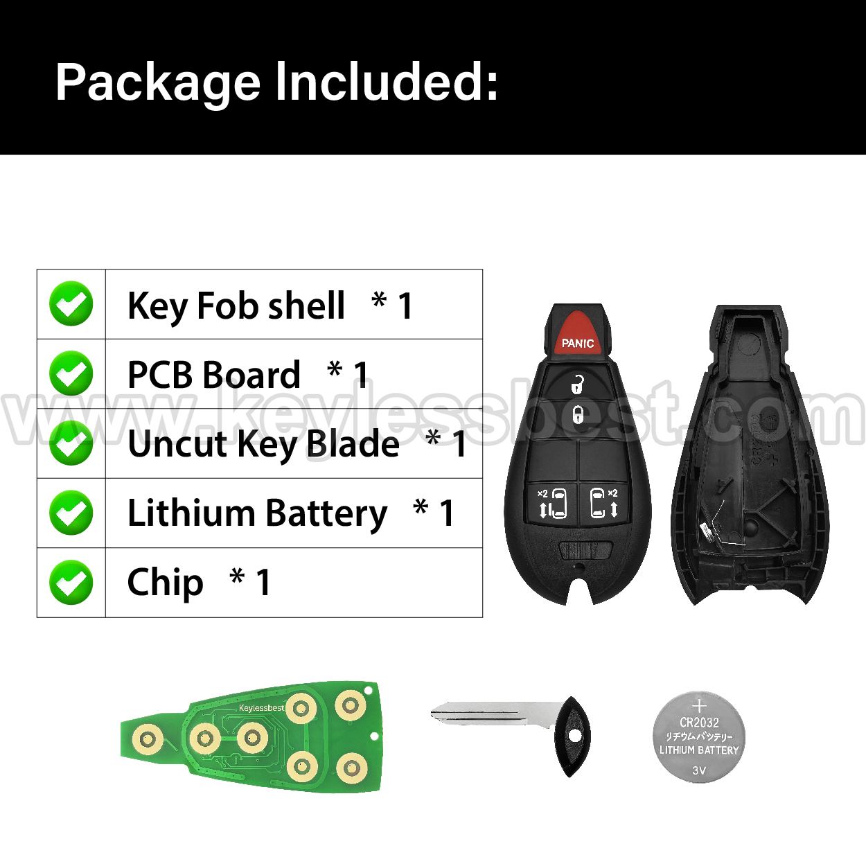 *The detailed information of this 2008-2019 Chrysler Dodge Volkswagen keyless remote fob is as follows. Please confirm the following details match your vehicle before ordering: FCC ID , Part Number , Year Model , IC , Frequency, Chip, and Buttons.
