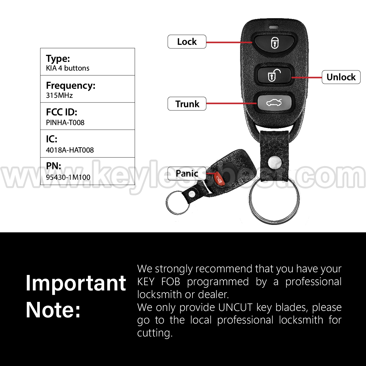 - Therefore, we strongly recommend that you have your KEY FOB programmed by a professional locksmith or dealer.
