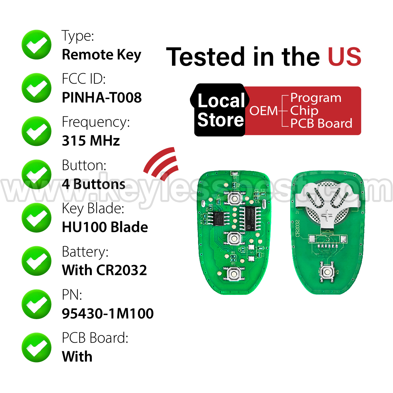 - The 2010-2014 Kia Hyundai smart keyless entry fob replacement – without a logo, with an uncut emergency insert key included.