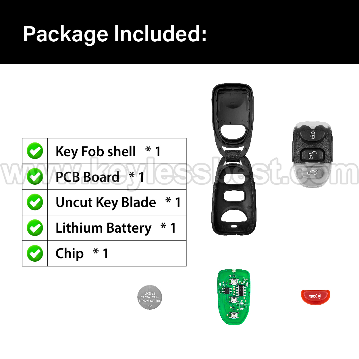 *The detailed information of this 2010-2014 Kia Hyundai keyless remote fob is as follows. Please confirm the following details match your vehicle before ordering: FCC ID , Part Number , Year Model ,IC, Frequency, Chip, and Buttons.