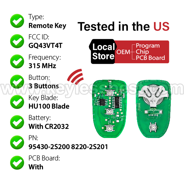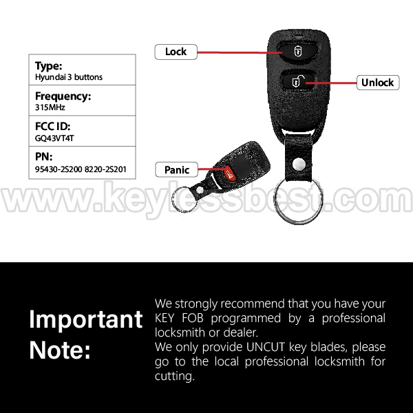 *The detailed information of this 2010-2015 Hyundai keyless remote fob is as follows. Please confirm the following details match your vehicle before ordering: FCC ID , Part Number , Year Model ,IC, Frequency, Chip, and Buttons.