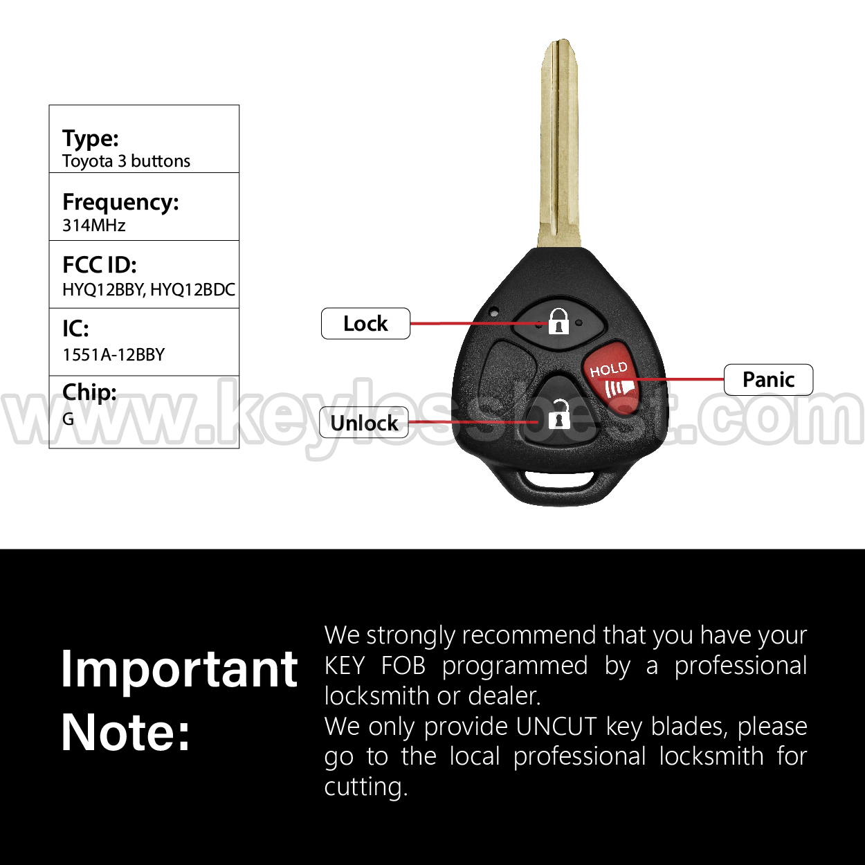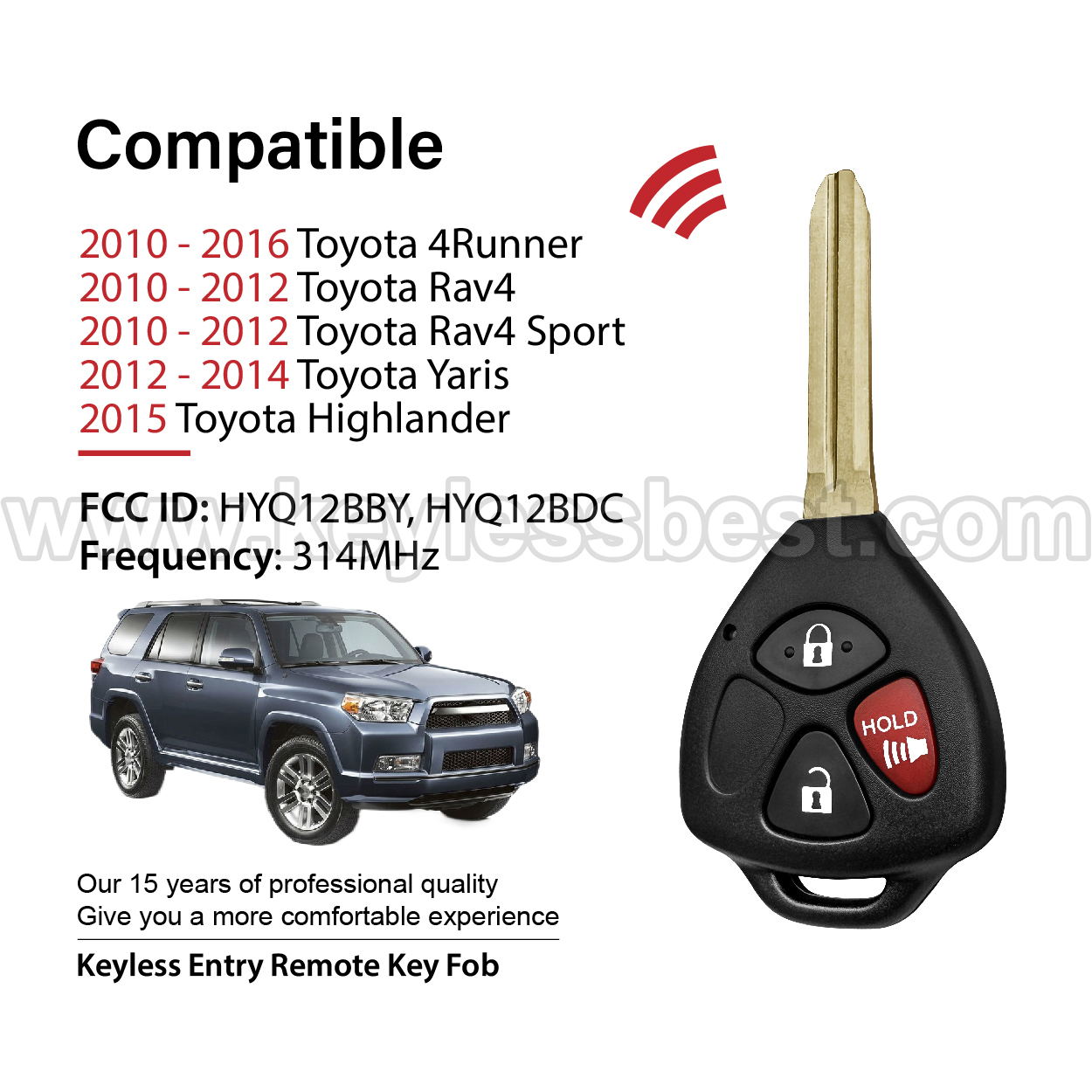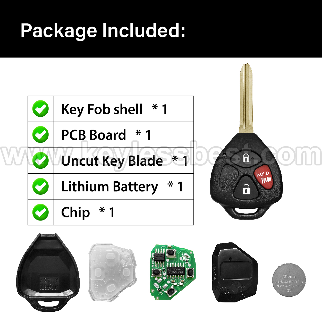 *The detailed information of this 2010-2016 Toyota keyless remote fob is as follows. Please confirm the following details match your vehicle before ordering: FCC ID , Part Number , Year Model ,IC, Frequency, Chip, and Buttons.