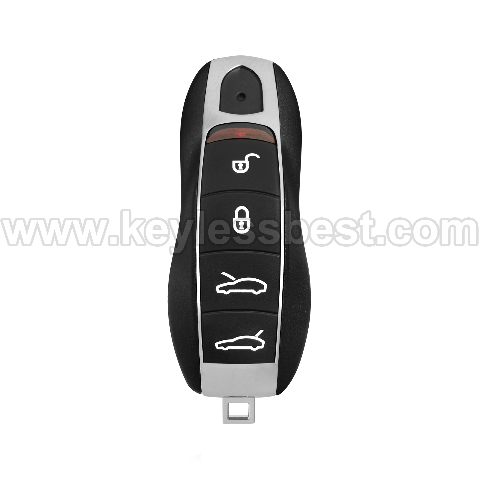 - The 2010 – 2018 Porsche smart keyless entry fob replacement – without a logo, with an uncut emergency insert key included.