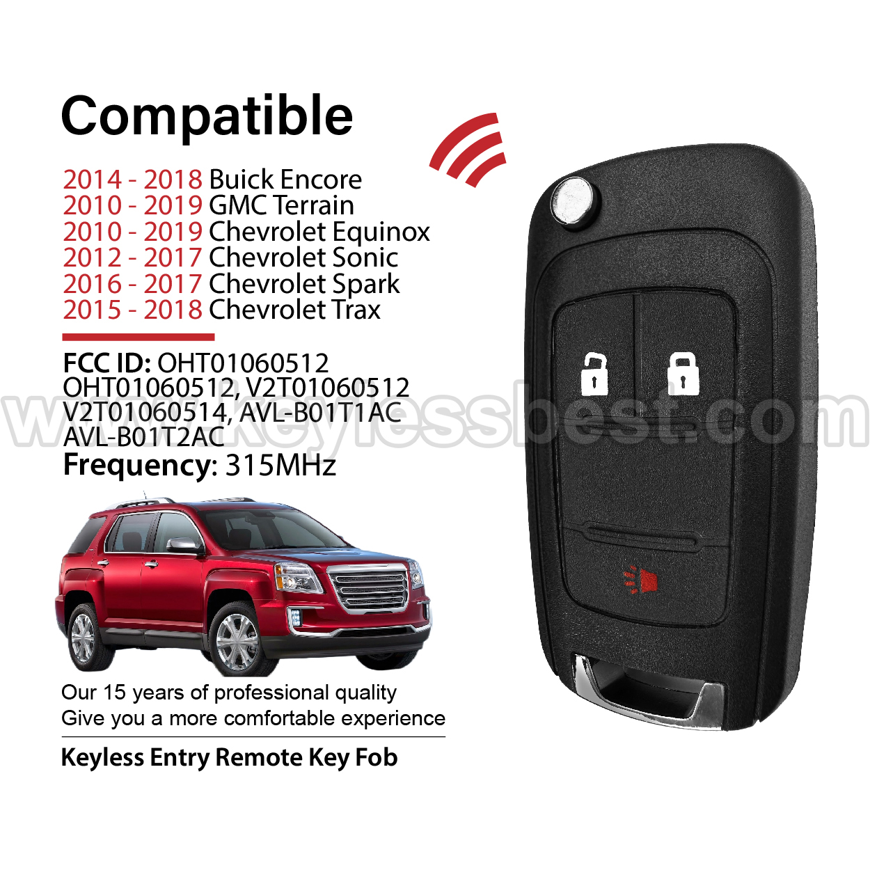2010-2019 Buick GMC Chevrolet Spark Sonic Trax Equinox Terrain Encore / 3 Buttons Keyless Entry Remote / OHT01060512, OHT01060512, V2T01060512, V2T01060514, AVL-B01T1AC, AVL-B01T2AC / PN:20873621 , 20873623 / 46