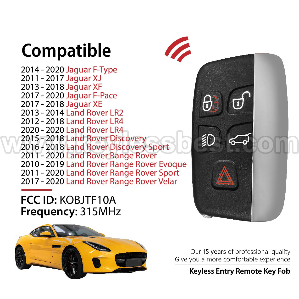 *The detailed information of this 2010-2020 Jaguar Land Rover keyless remote fob is as follows. Please confirm the following details match your vehicle before ordering: FCC ID , Part Number , Year Model ,IC, Frequency, Chip, and Buttons.