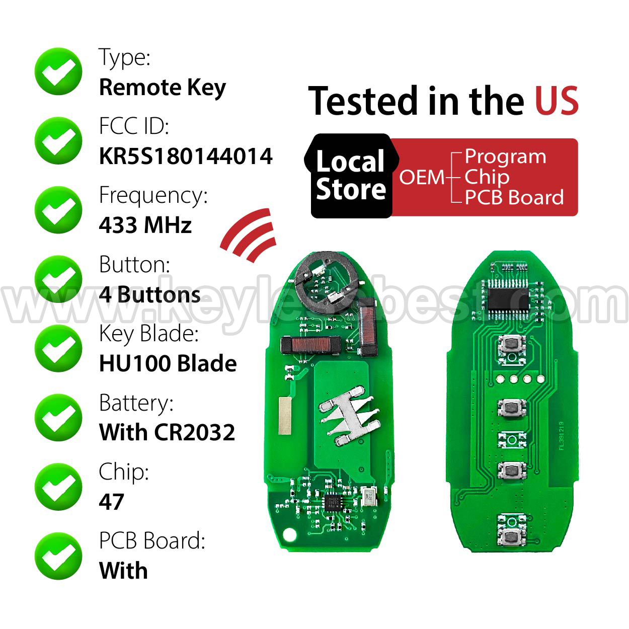*The detailed information of this 2013-2016 Infiniti Nissan keyless remote fob is as follows. Please confirm the following details match your vehicle before ordering: FCC ID , Part Number , Year Model , IC , Frequency, Chip, and Buttons.