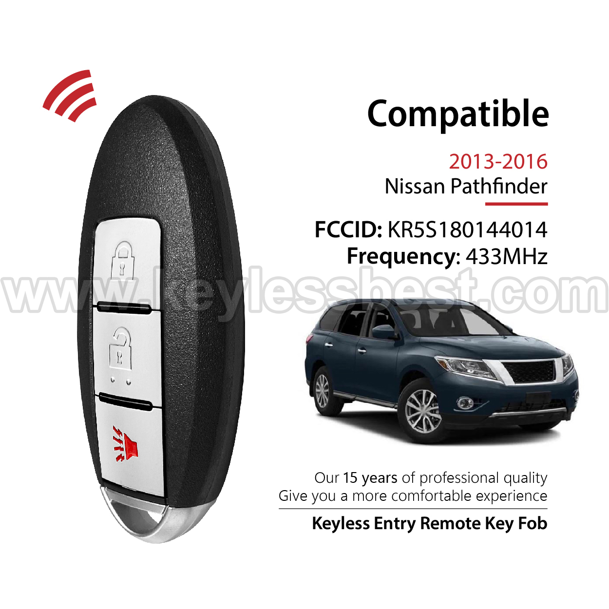 2013-2016 Nissan Pathfinder / 3 Buttons Keyless Entry Remote / KR5S180144014 / PN: 285E3-3KL4A, 285E3-9PB3A / 47