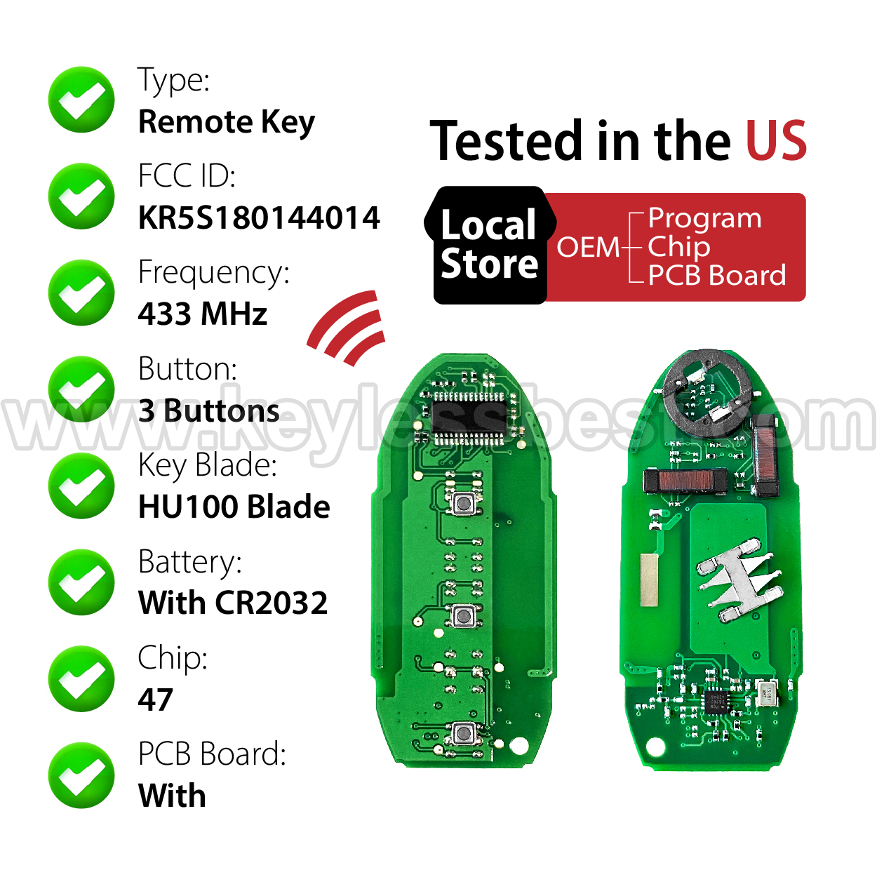 *The detailed information of this 2013-2016 Nissan keyless remote fob is as follows. Please confirm the following details match your vehicle before ordering: FCC ID , Part Number , Year Model , IC , Frequency, Chip, and Buttons.