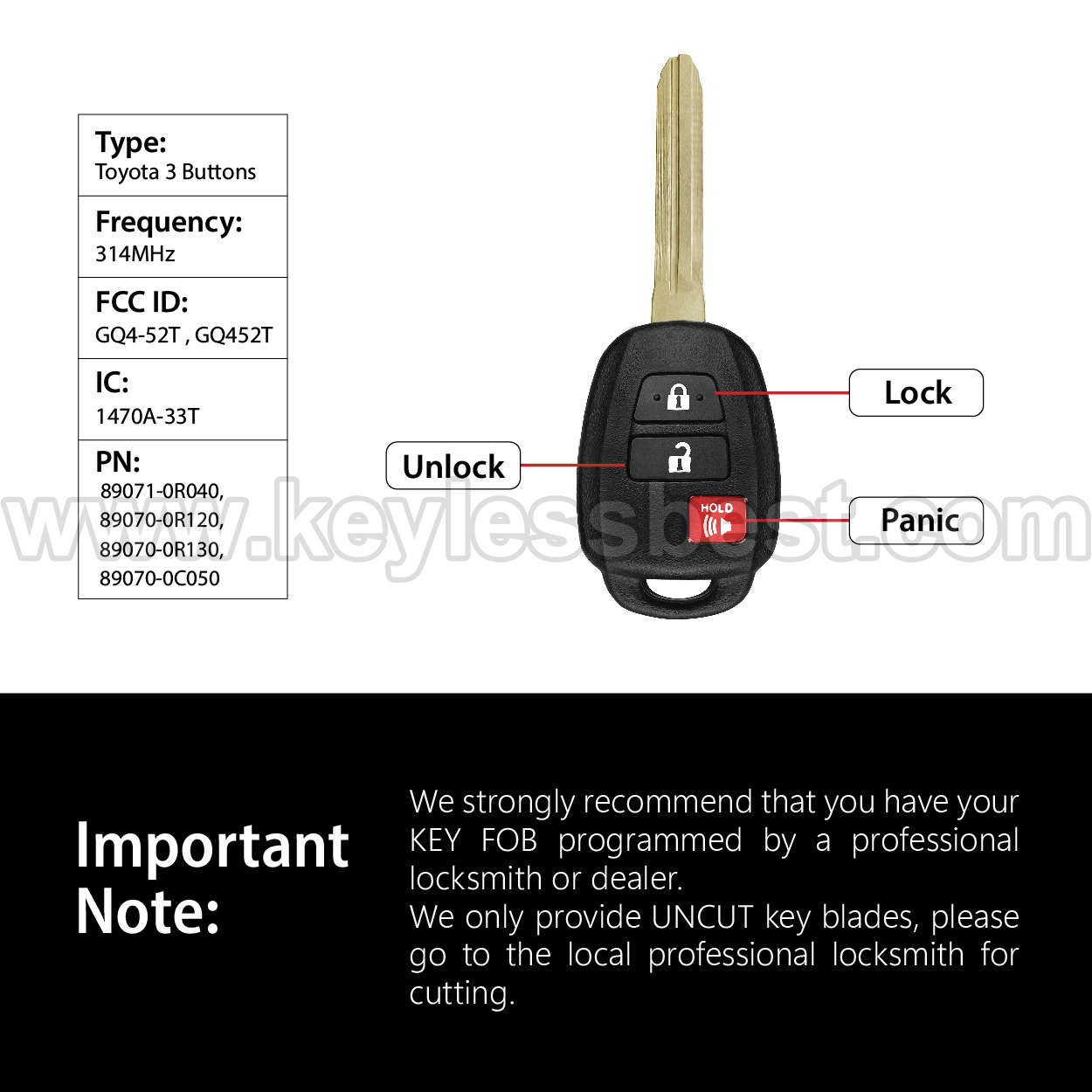 *The detailed information of this 2013-2021 Toyota keyless remote fob is as follows. Please confirm the following details match your vehicle before ordering: FCC ID , Part Number , Year Model , IC , Frequency, Chip, and Buttons.