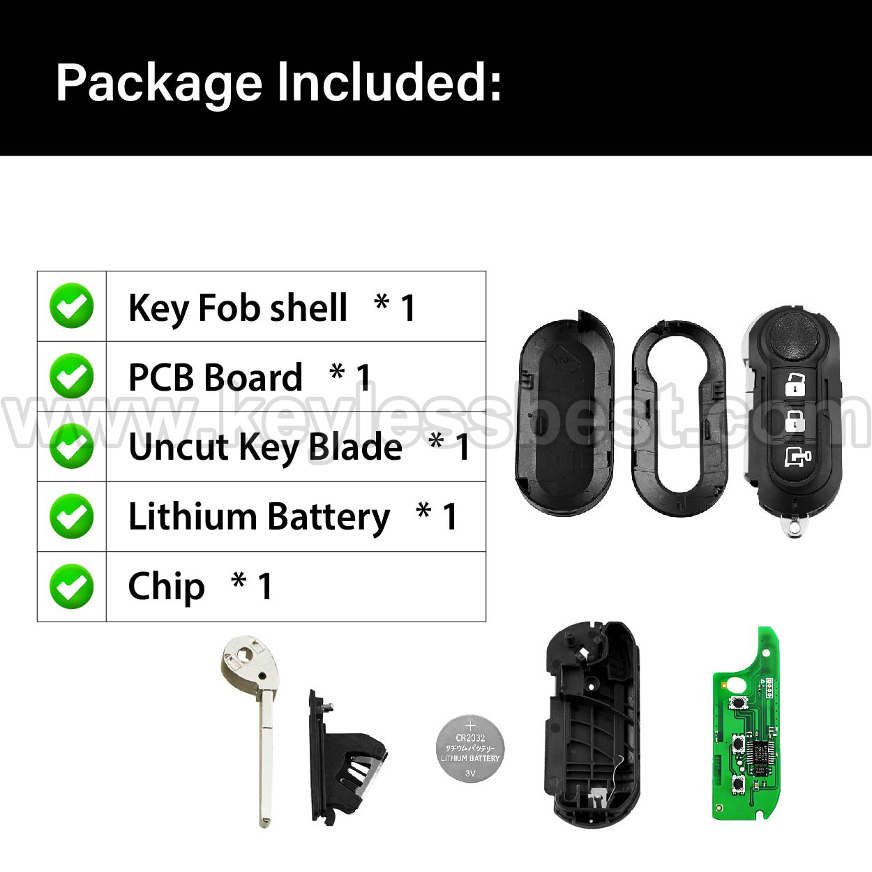 - The 2014 – 2017 Fiat Dodge smart keyless entry fob replacement – without a logo, with an uncut emergency insert key included.