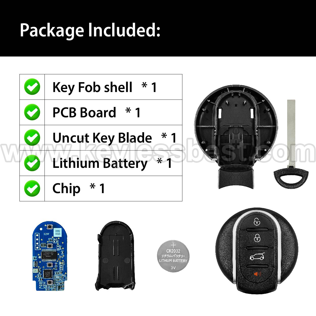 - The 2014-2018 Mini smart keyless entry fob replacement – without a logo, with an uncut emergency insert key included.