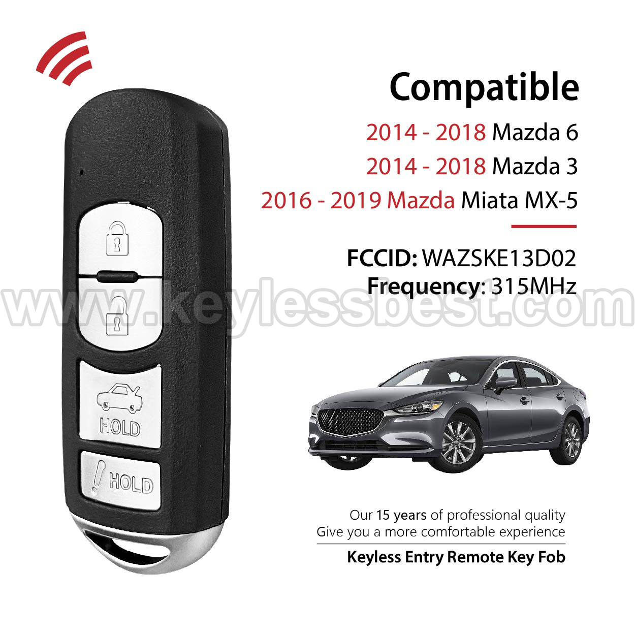 *The detailed information of this 2014-2019 Mazda keyless remote fob is as follows. Please confirm the following details match your vehicle before ordering: FCC ID , Part Number , Year Model , IC , Frequency, Chip, and Buttons.