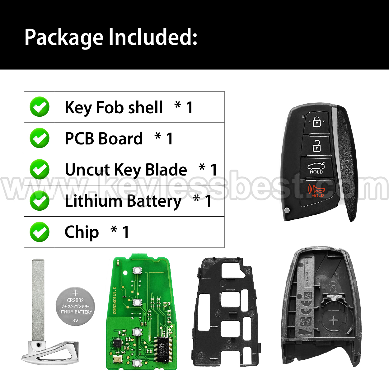 • The 2015-2016 Hyundai smart keyless entry fob replacement –   without  a  logo, with  an  uncut emergency  insert  key included.