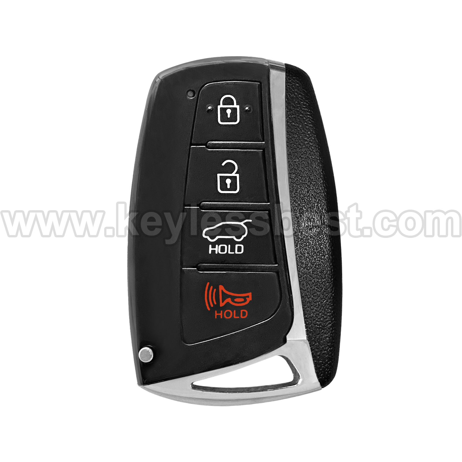 - The 2015-2018 Hyundai smart keyless entry fob replacement – without a logo, with an uncut emergency insert key included.