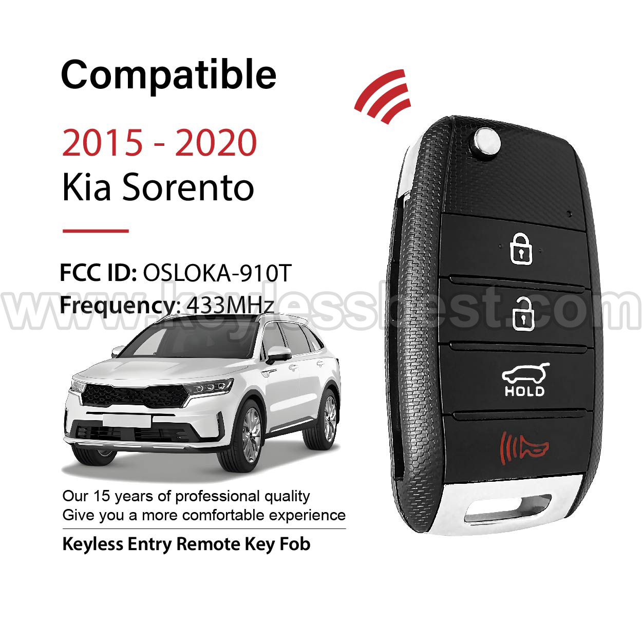 *The detailed information of this 2015-2020 Kia keyless remote fob is as follows. Please confirm the following details match your vehicle before ordering: FCC ID , Part Number ,  Year Model , IC ,   Frequency, Chip, and Buttons.