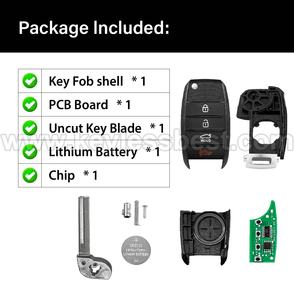 • The 2015-2020 Kia smart keyless entry fob replacement –   without  a  logo, with  an  uncut emergency  insert  key included.