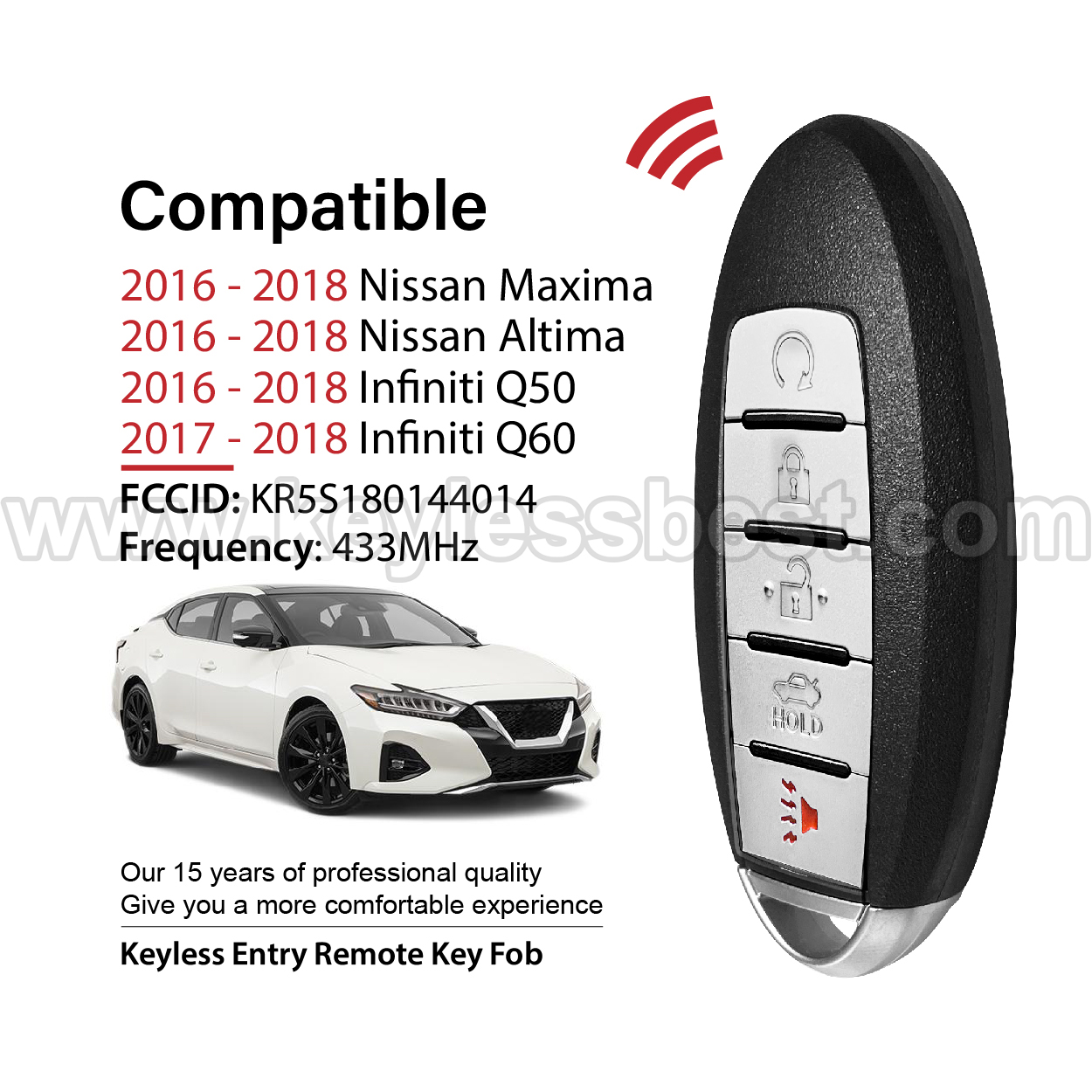 2016-2018 Nissan Infiniti QX60 Q50 Q60 Maxima Altima / 5 Buttons Keyless Entry Remote / KR5S180144014 / PN:285E3-4RA0B,285E3-9NF5A / 4A