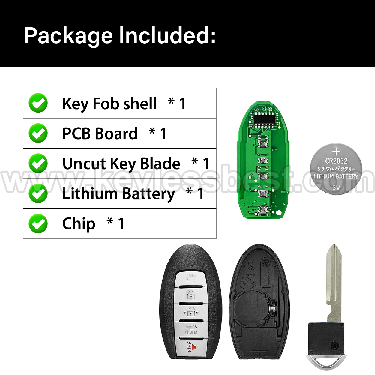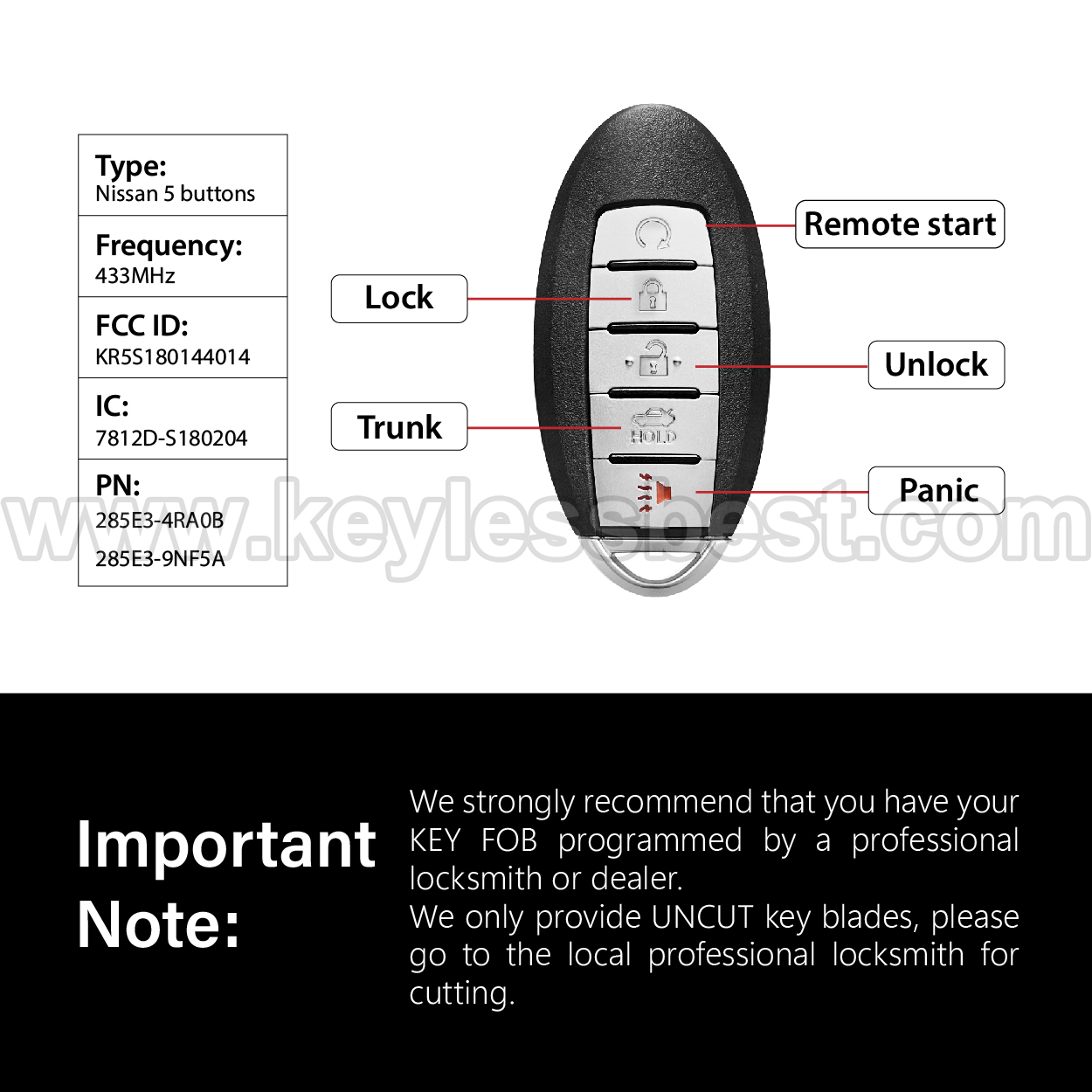 *The detailed information of this 2016-2018 Nissan Infiniti keyless remote fob is as follows. Please confirm the following details match your vehicle before ordering: FCC ID , Part Number , Year Model , IC , Frequency, Chip, and Buttons.
