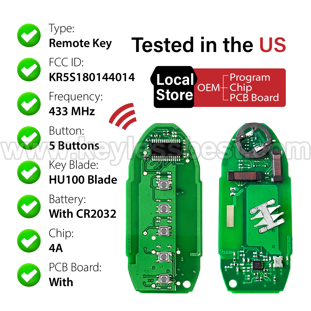 NOTE: 2016 Q50 has 3 separate prox options, all with different FCC’s – run VIN with the dealer to confirm OEM part before ordering!