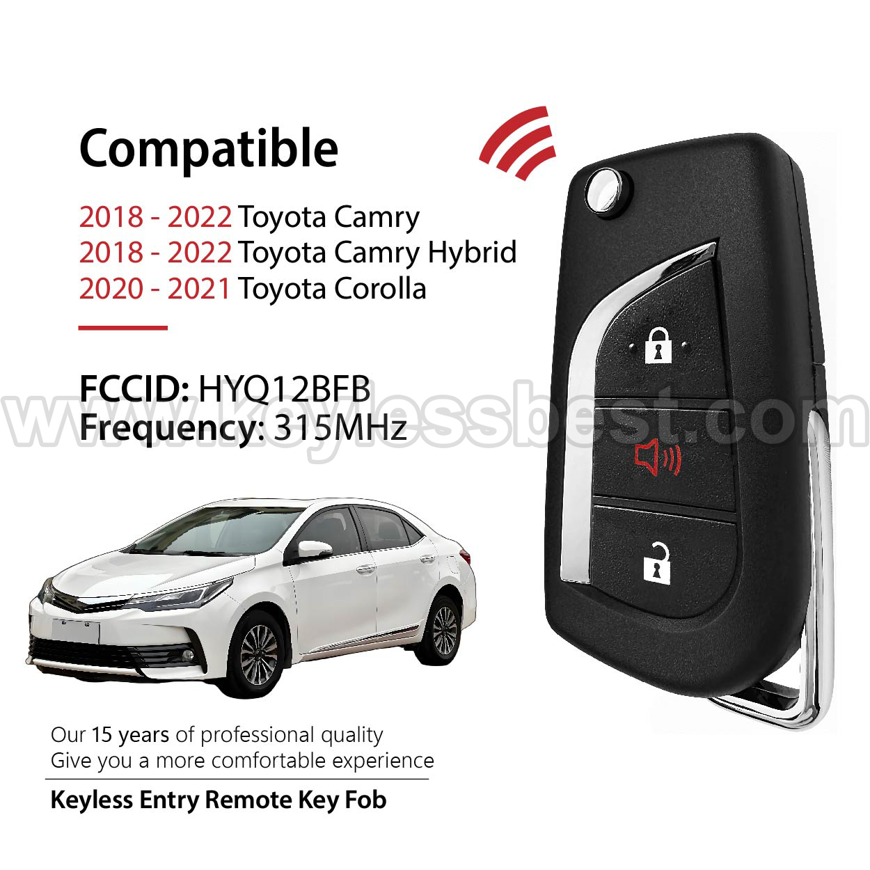 *The detailed information of this 2017 – 2018 Toyota Scion keyless remote fob is as follows. Please confirm the following details match your vehicle before ordering: FCC ID , Part Number , Year Model ,IC, Frequency, Chip, and Buttons.