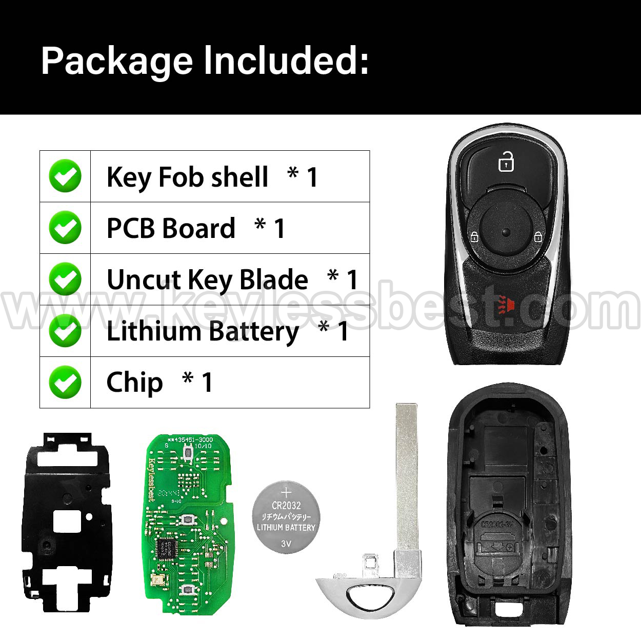 - The 2018-2020 Buick Saturn Buick Pontiac Suzuki smart keyless entry fob replacement – without a logo, with an uncut emergency insert key included.
