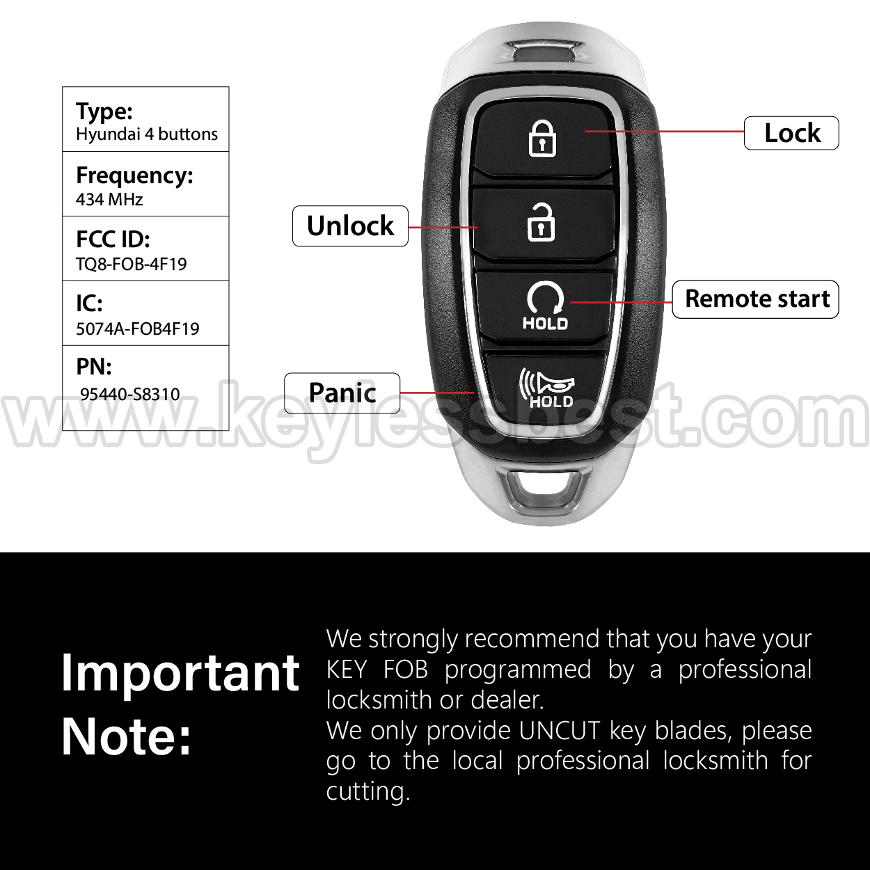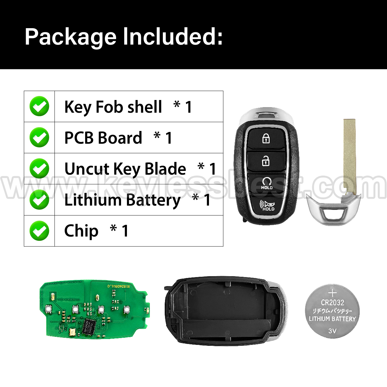 *The detailed information of this 2020-2021 Hyundai keyless remote fob is as follows. Please confirm the following details match your vehicle before ordering: FCC ID , Part Number , Year Model ,IC, Frequency, Chip, and Buttons.