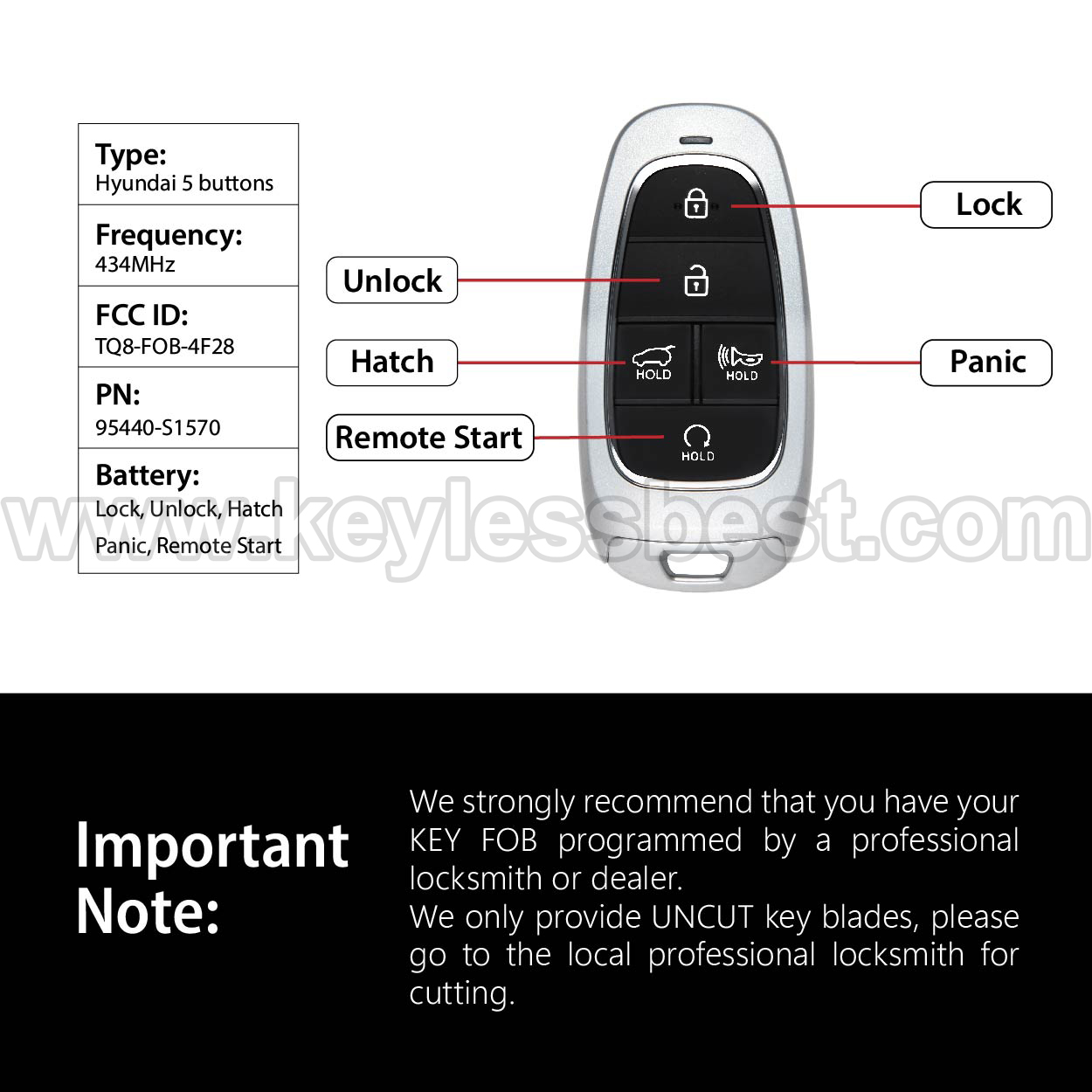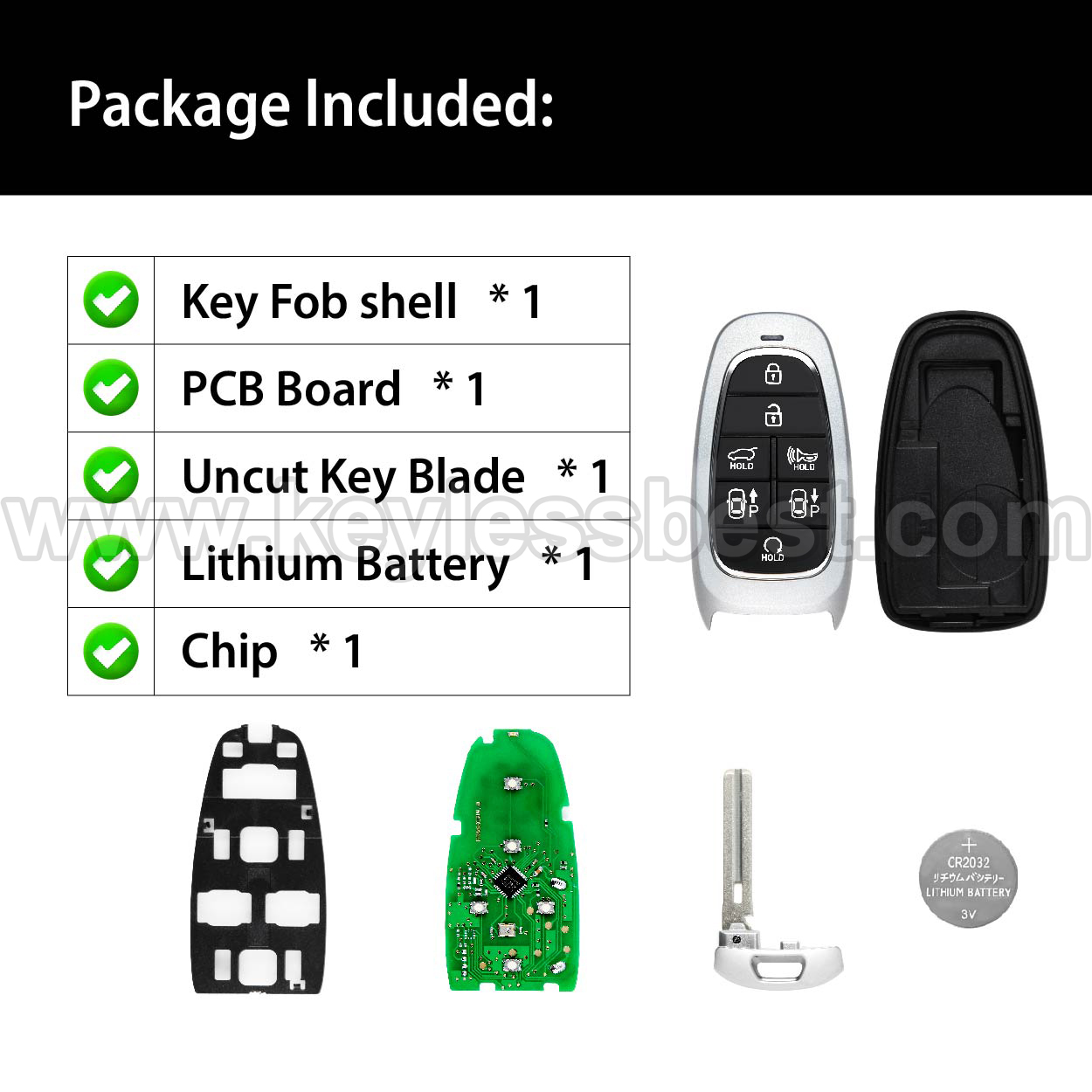 *The detailed information of this 2021-2022 Hyundai keyless remote fob is as follows. Please confirm the following details match your vehicle before ordering: FCC ID , Part Number , Year Model , IC , Frequency, Chip, and Buttons.