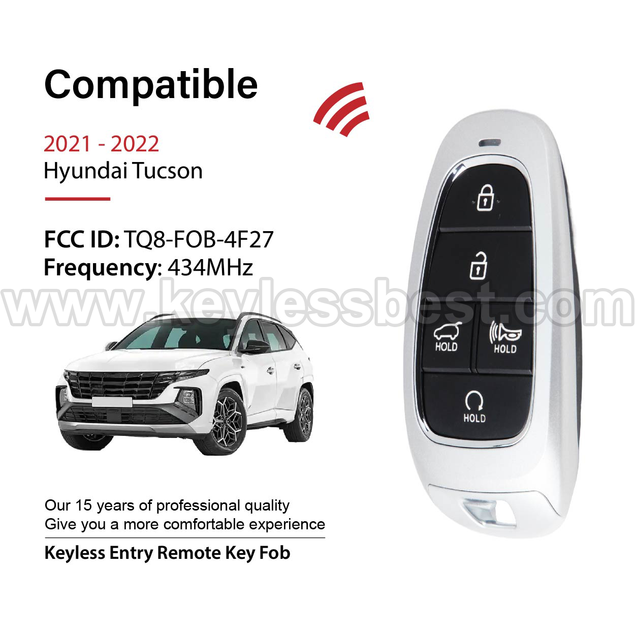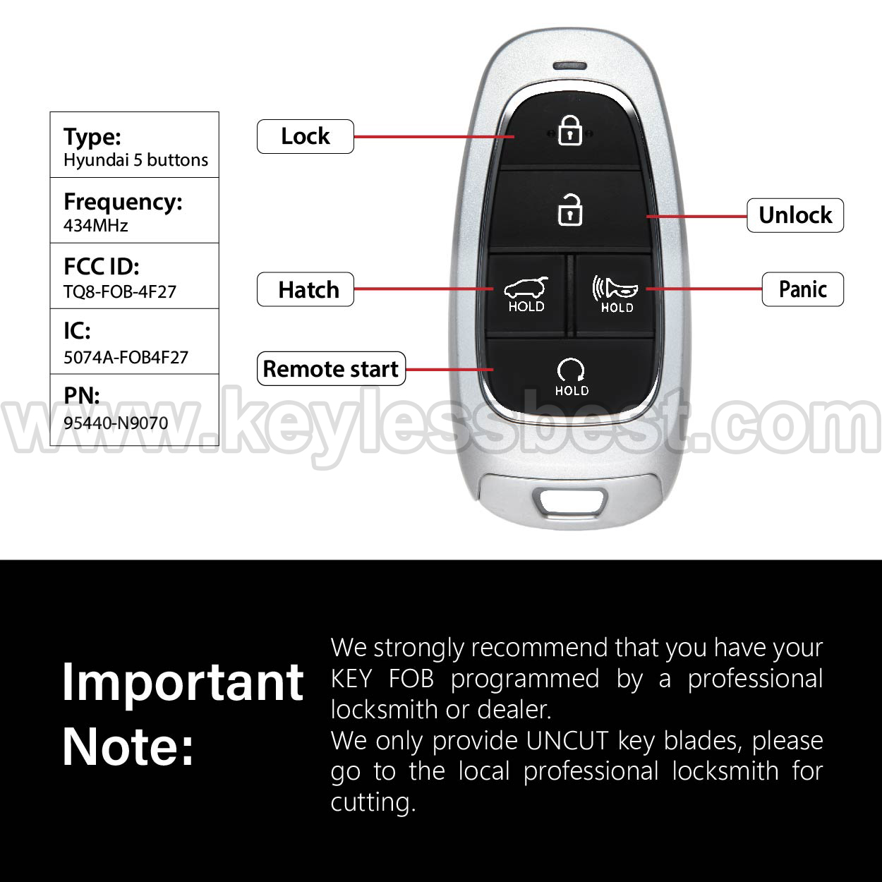 *The detailed information of this 2021-2022 Hyundai keyless remote fob is as follows. Please confirm the following details match your vehicle before ordering: FCC ID , Part Number , Year Model , IC , Frequency, Chip, and Buttons.